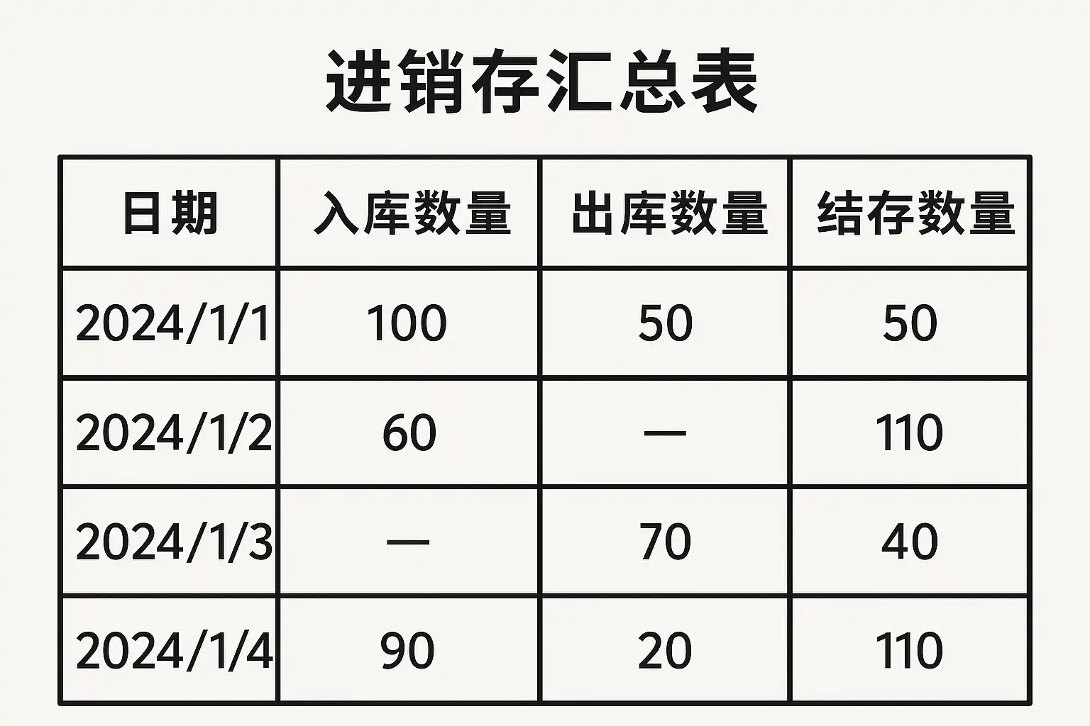 - 汇总计算:根据时间周期计算采购量、销售量和库存余额。