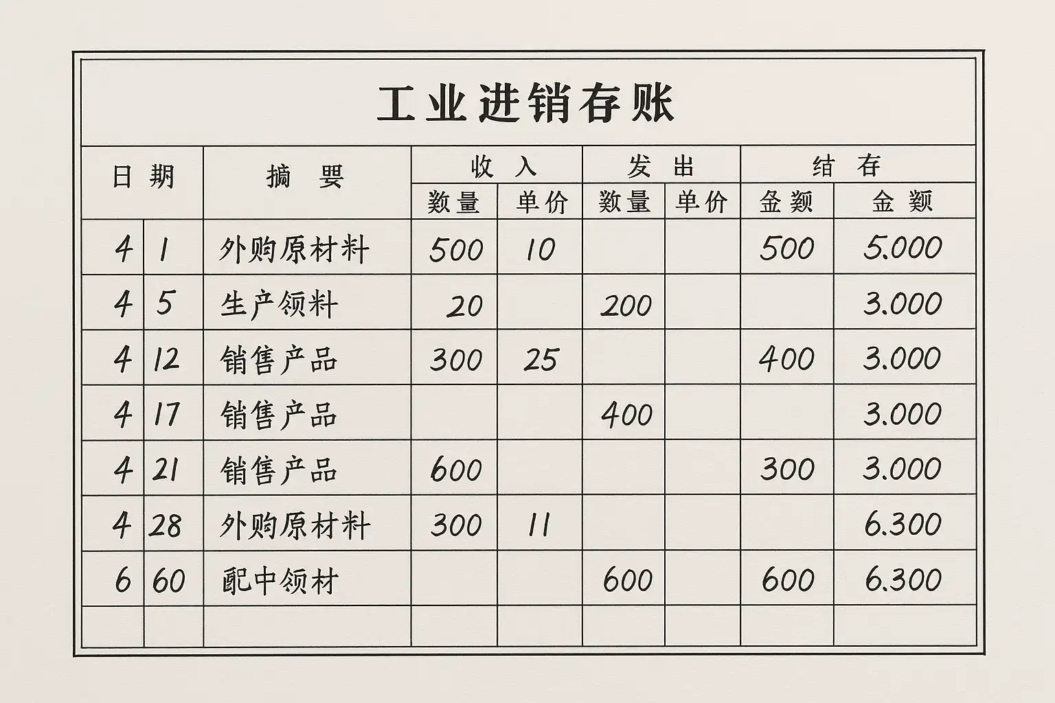 我作为工业企业的财务人员,常常困惑工业进销存账的具体写法,包括入库、出库和库存记录该如何规范填写,能否详细说明工业进销存账的标准写法?