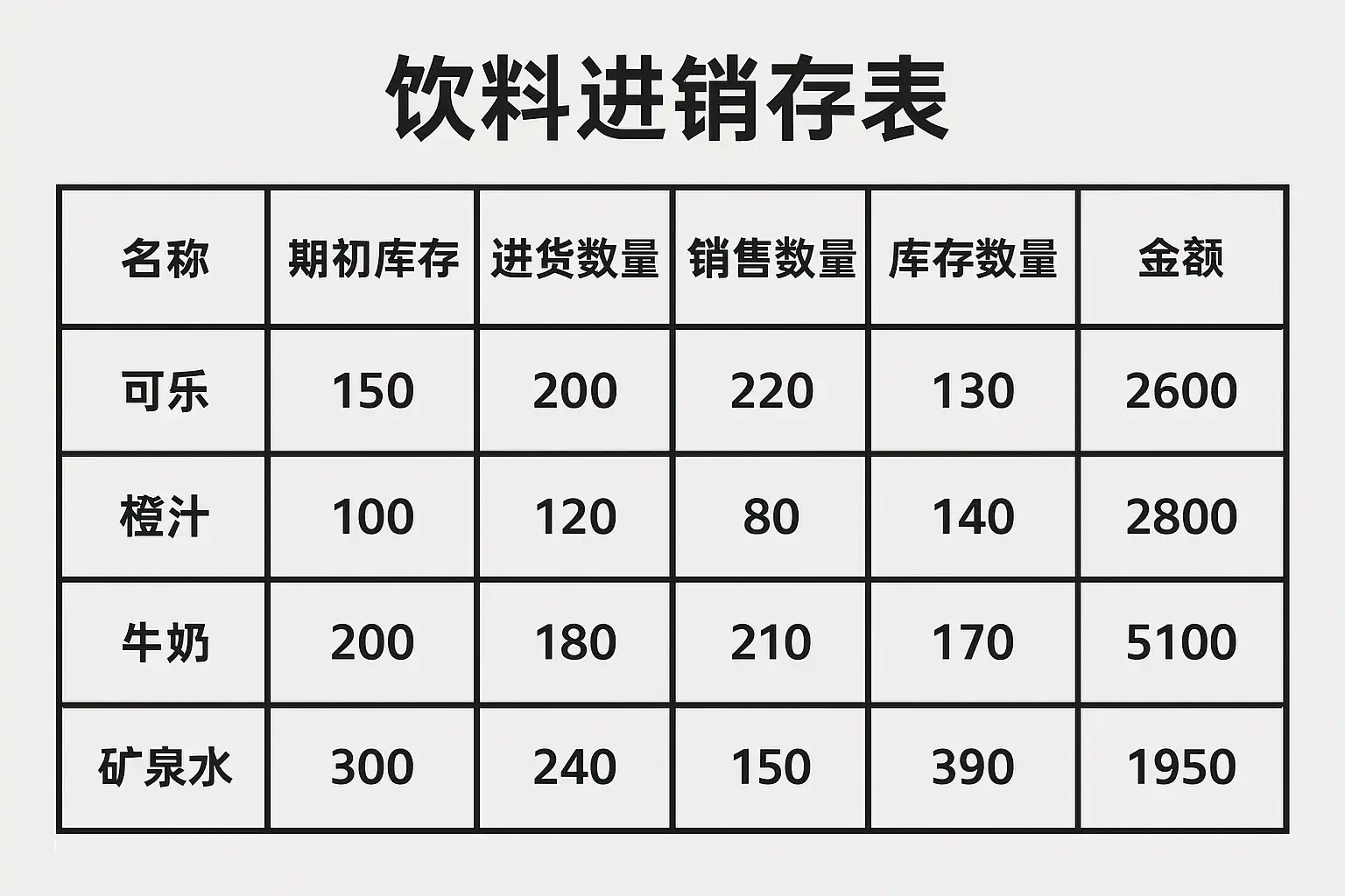 一、明确饮料进销存表格的数据结构