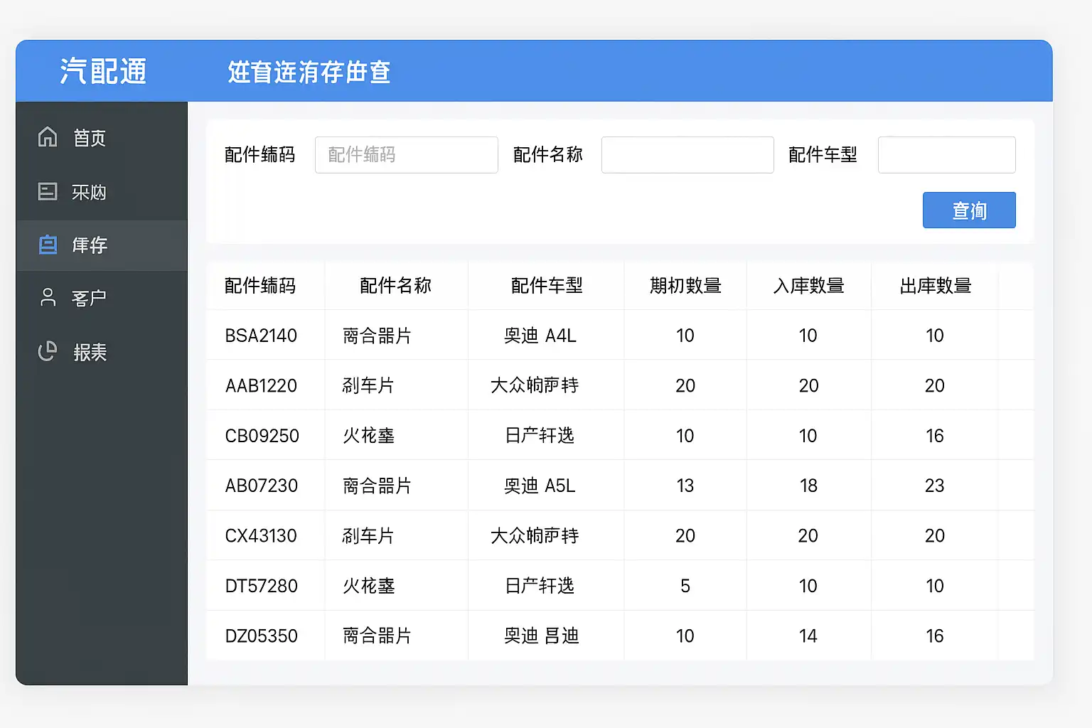 汽配通作为国内知名汽车零部件综合服务平台,内置了基础的进销存管理模块,为用户日常查账和库存盘点提供了便捷工具。以下是其主要查询方式: