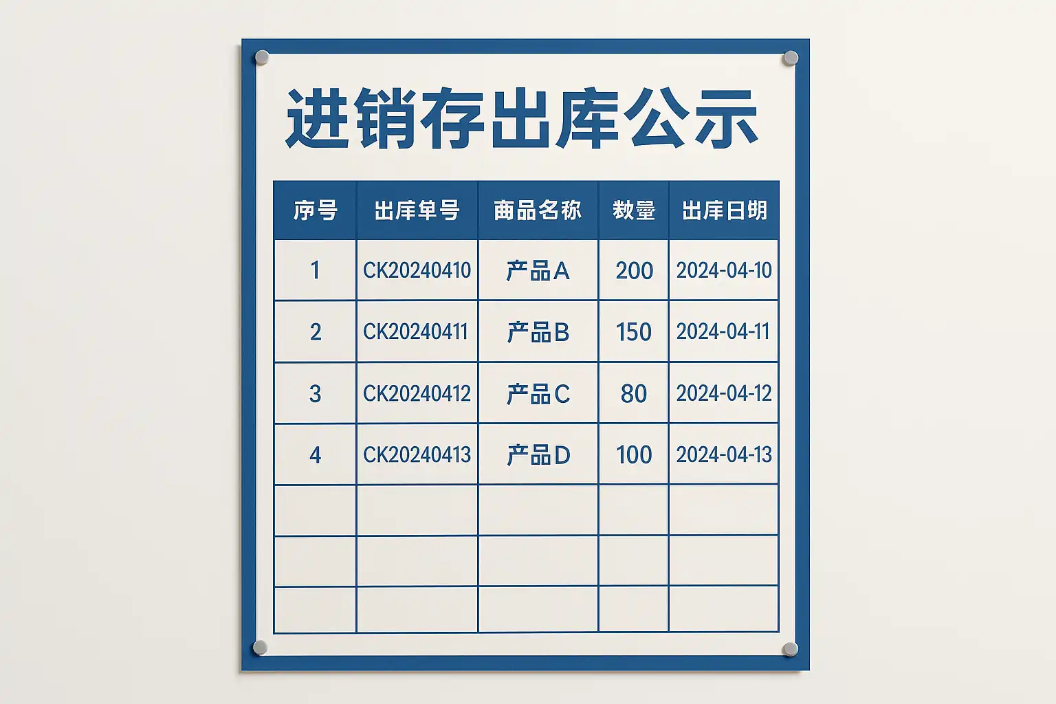 根据行业调研数据显示,有效利用出库公示功能的企业,库存差异率平均下降12%,运营成本降低8%。例如,一家电子产品经销商通过严格的出库公示,实现了月末盘点时间缩短30%的效果。