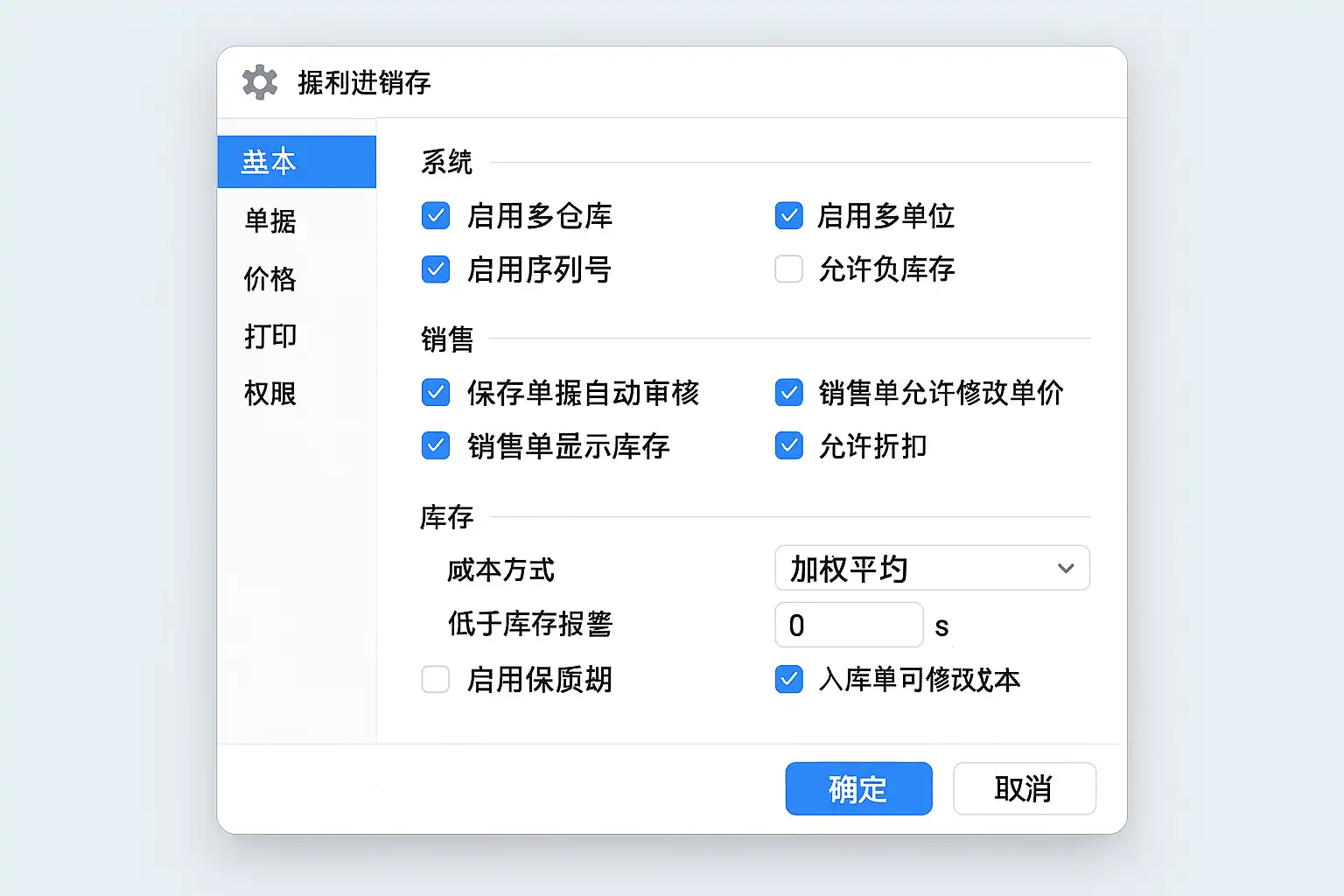 完成前期准备后,需要在捷利进销存系统后台进行核心参数设置。该环节是整个进销存运作顺畅的基石。