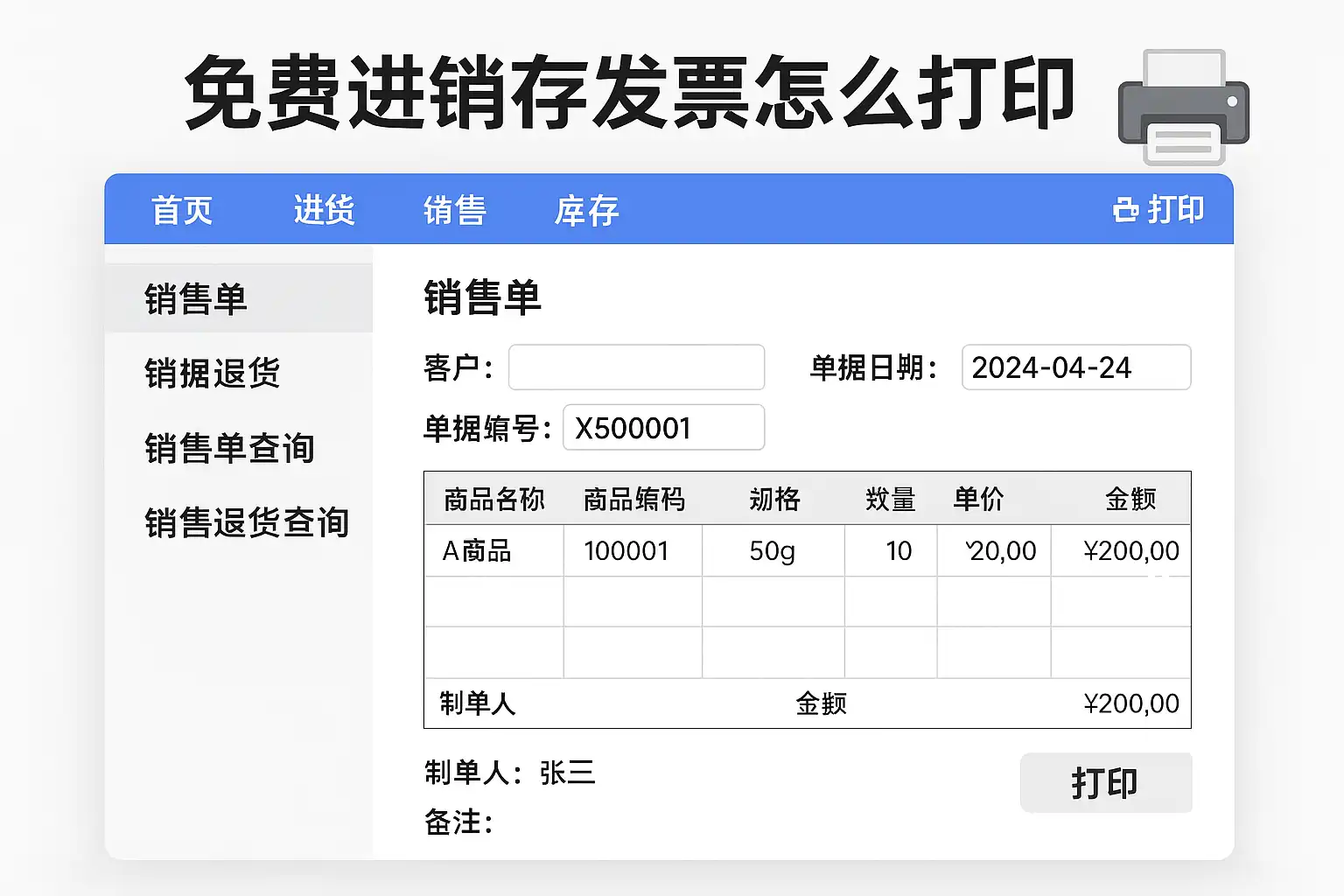 我刚开始使用免费的进销存软件,想知道如何快速打印发票。有没有简单易懂的步骤指导?打印过程中需要注意哪些细节?