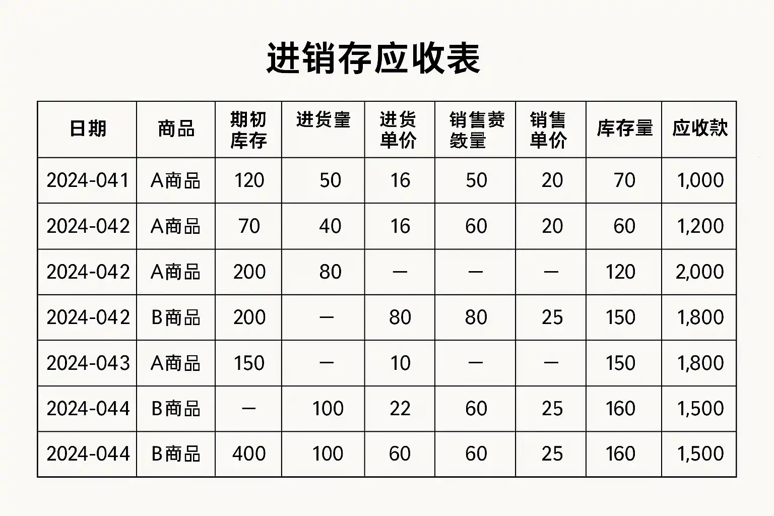 一、明确进销存应收表格的基本结构