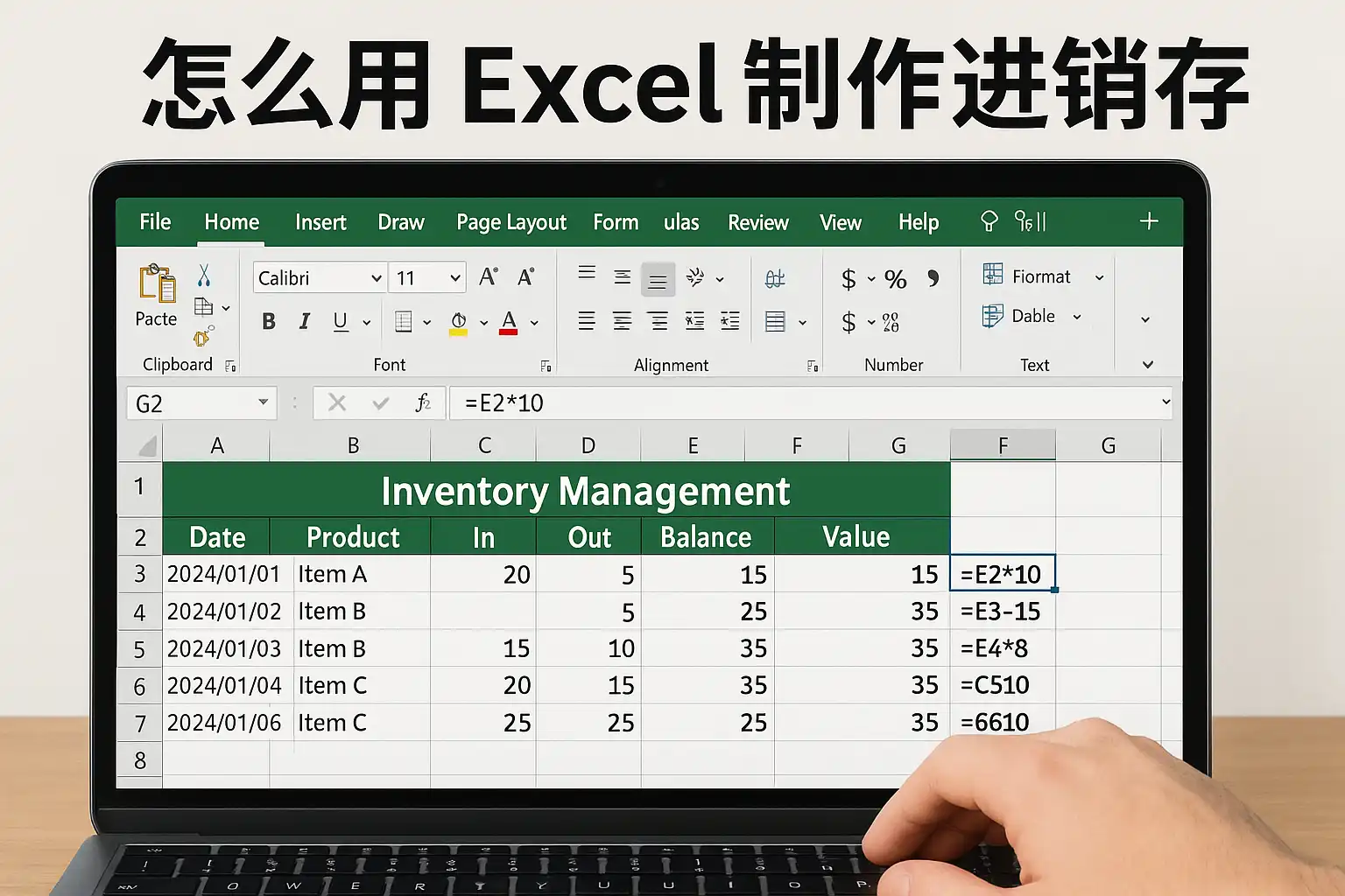 自动计算当前库存,是Excel进销存模板的核心。常用方法如下: