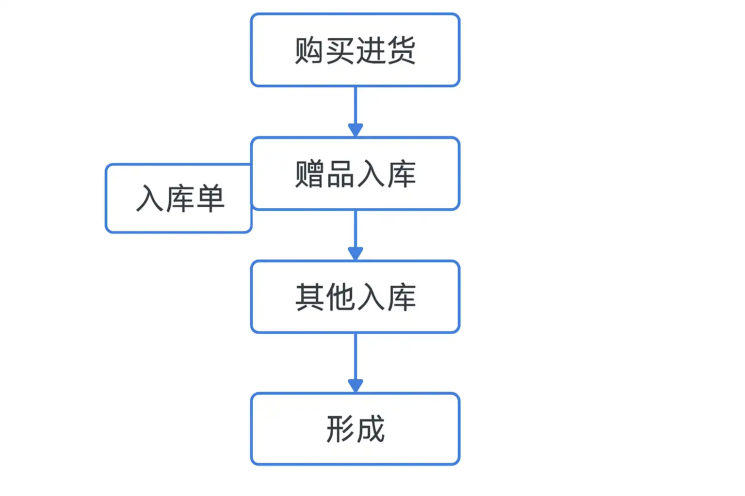 | 入库单据类型 | 采购订单/生产单 | 内部调拨单/采购订单备注“赠送用途” |