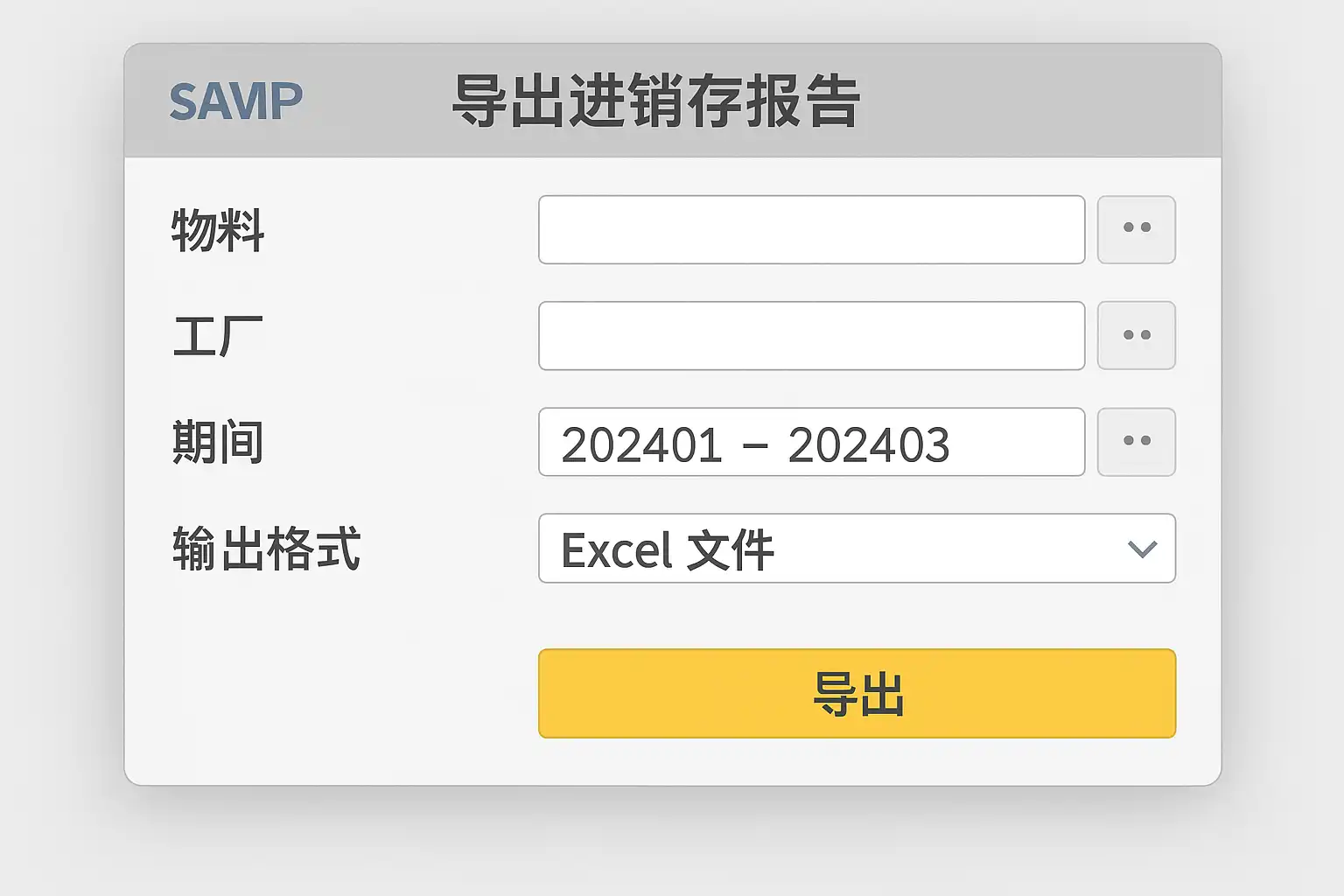 - 准备Excel或CSV格式的进销存数据文件,确保字段与SAP模板匹配;