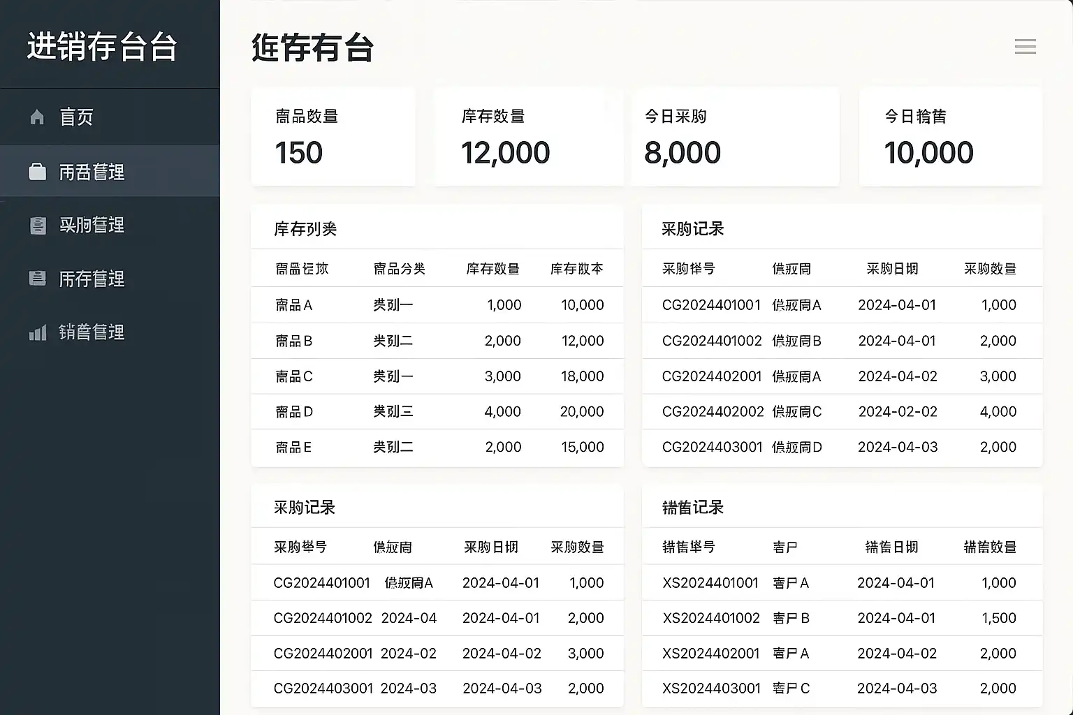 进销存后台系统的核心功能主要包括库存管理、采购管理、销售管理和财务报表四大模块。库存管理通过实时数据更新,实现库存准确率提升至99%;采购管理支持供应商信息维护及订单跟踪,降低采购成本约15%;销售管理涵盖订单处理和客户关系维护,提升客户满意度20%;财务报表则自动生成各类经营数据报表,帮助企业科学决策。例如,一家中型企业使用该系统后,库存周转率提高了30%,大幅提升运营效率。