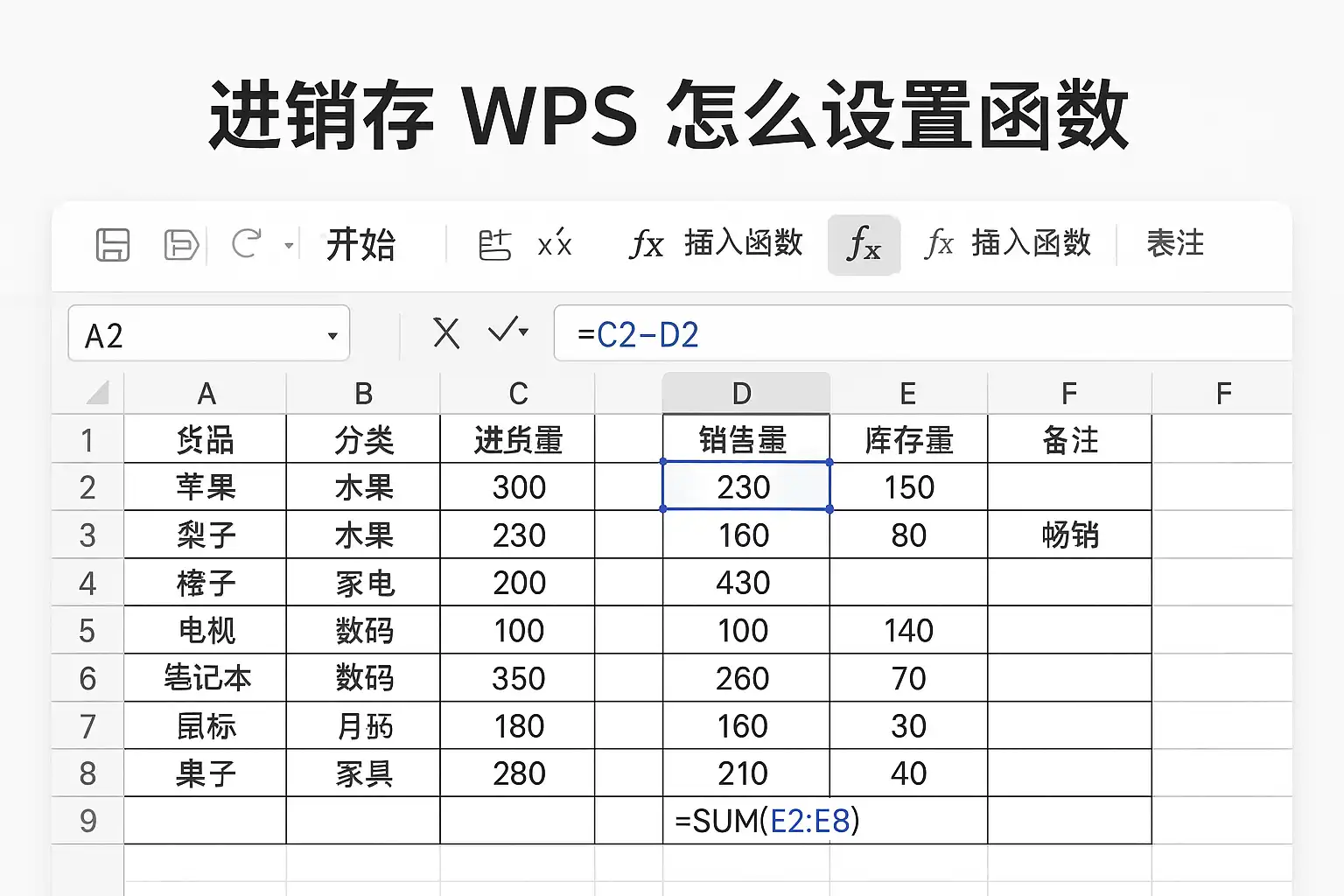 进销存WPS函数设置教程,进销存WPS函数怎么设置?