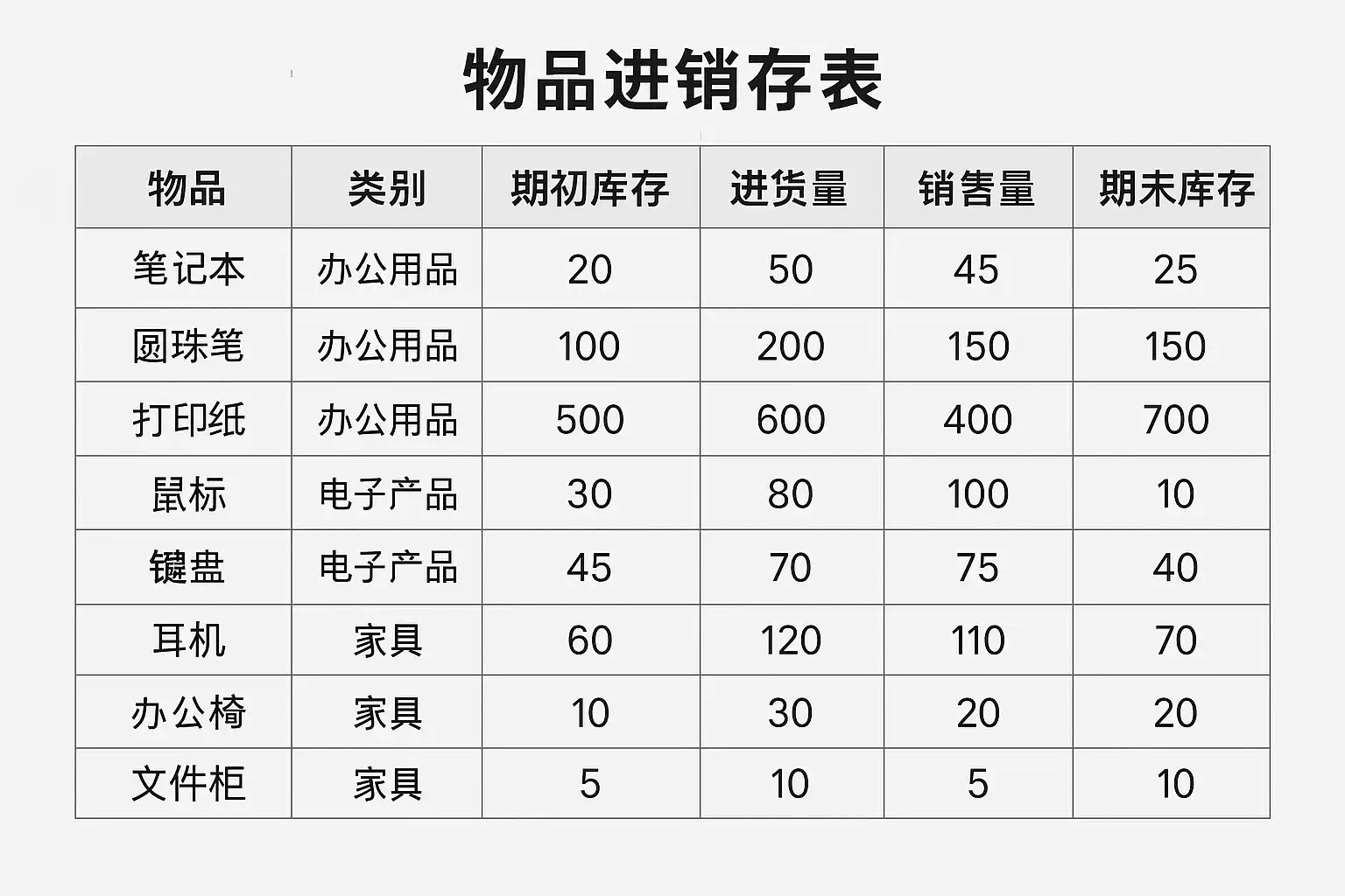 - 按类别/供应商排序:便于汇总与分析特定类型或来源的物资流动情况。