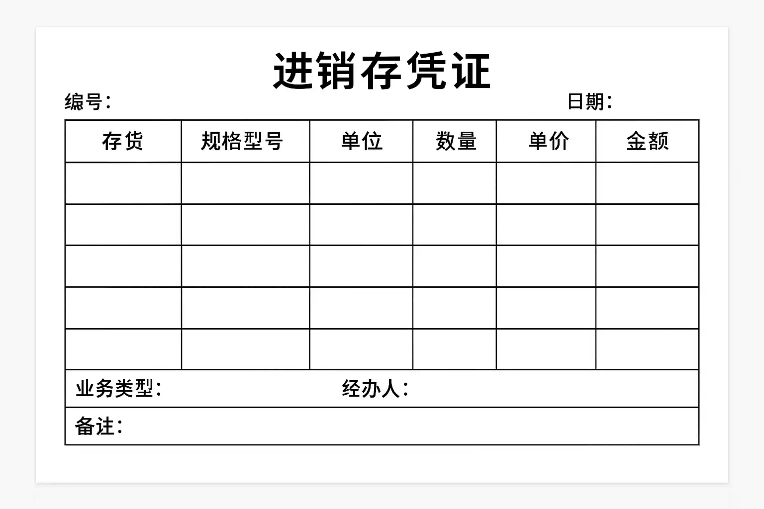 一份合格的进销存凭证通常包含以下核心栏目: