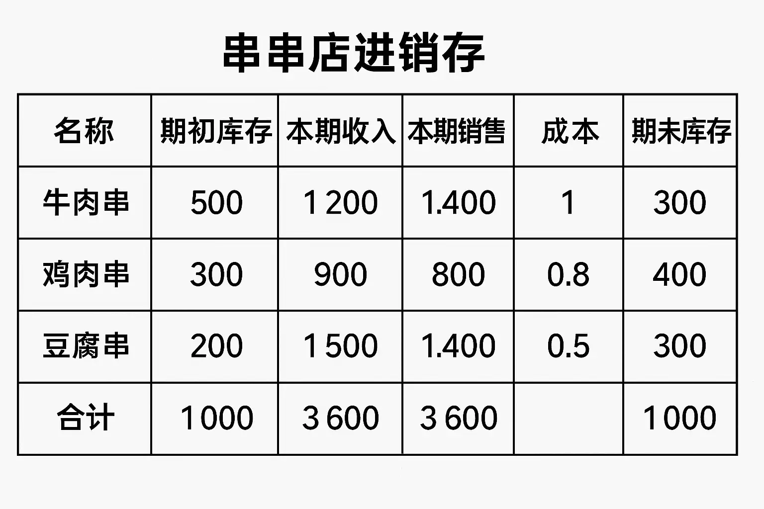 串串店进销存怎么计算的