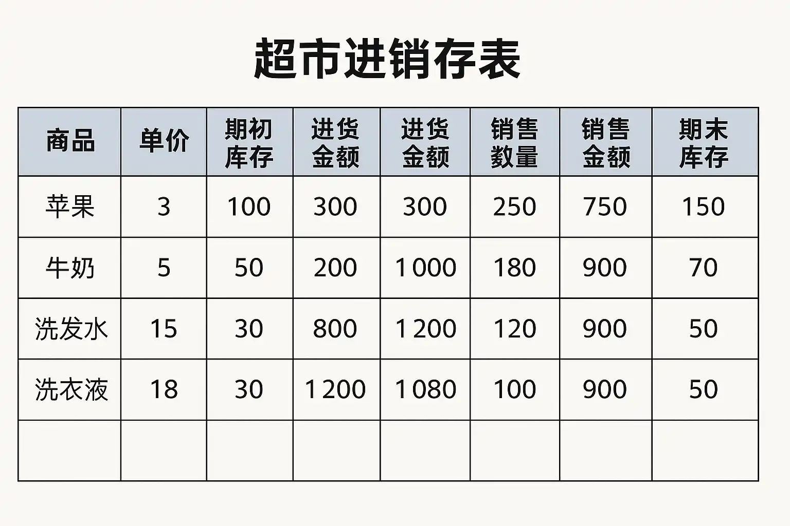 超市日常运营涉及采购员(补货)、仓管员(收发)、财务(成本核算)、店长(决策)等多个角色。一个好的进销存表格或系统应满足他们的信息协同需求:
