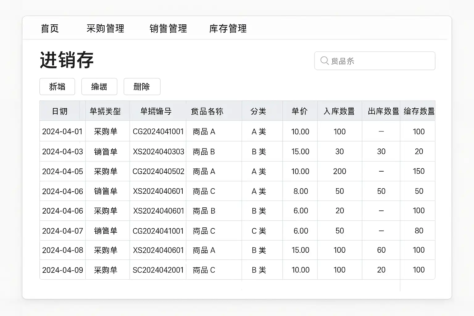标准的进销存操作应包括如下环节: