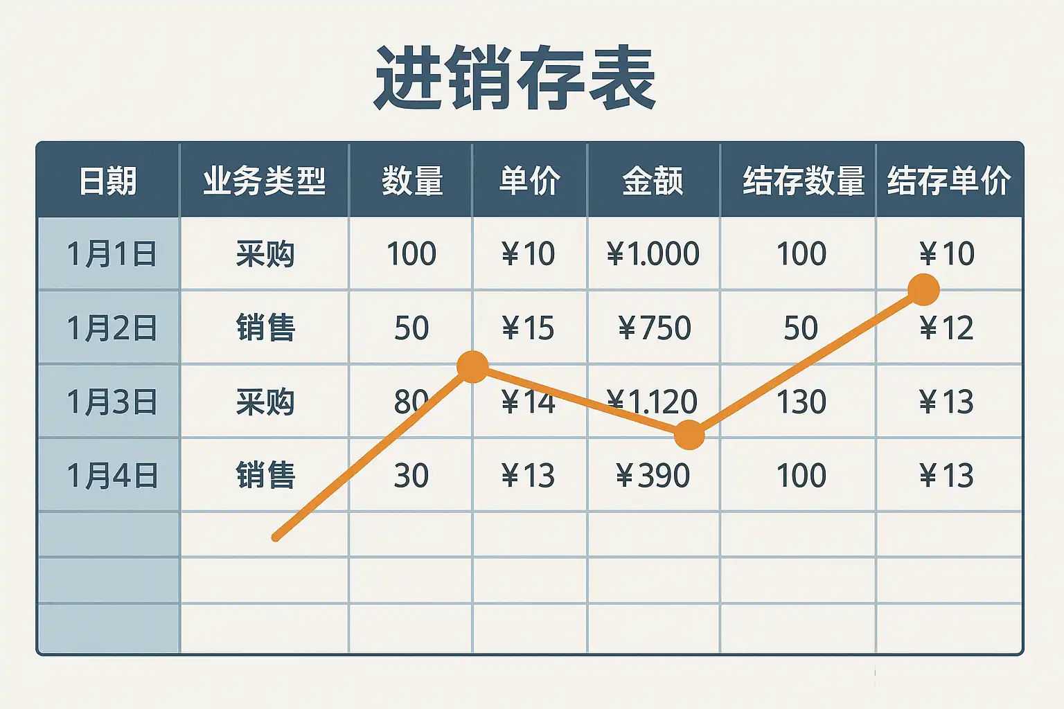 无论采用哪种方法,都应关注以下几个关键字段,它们共同决定了“怎么看懂”一份进销存表里的行情走势: