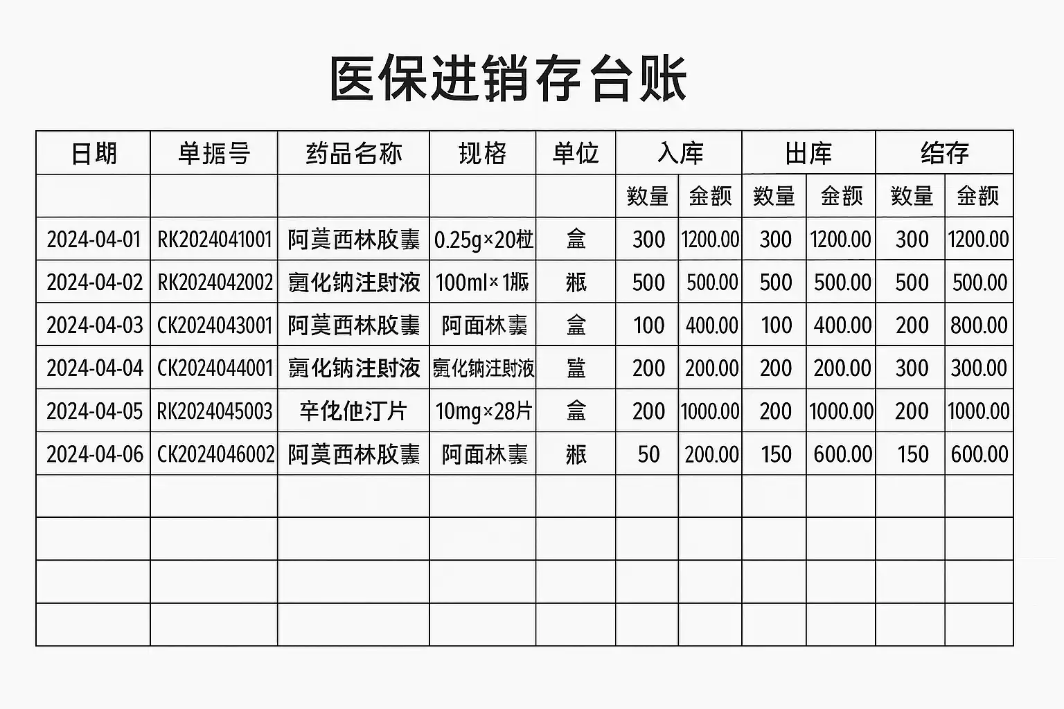 在医保进销存台账中,重点关注以下关键数据: