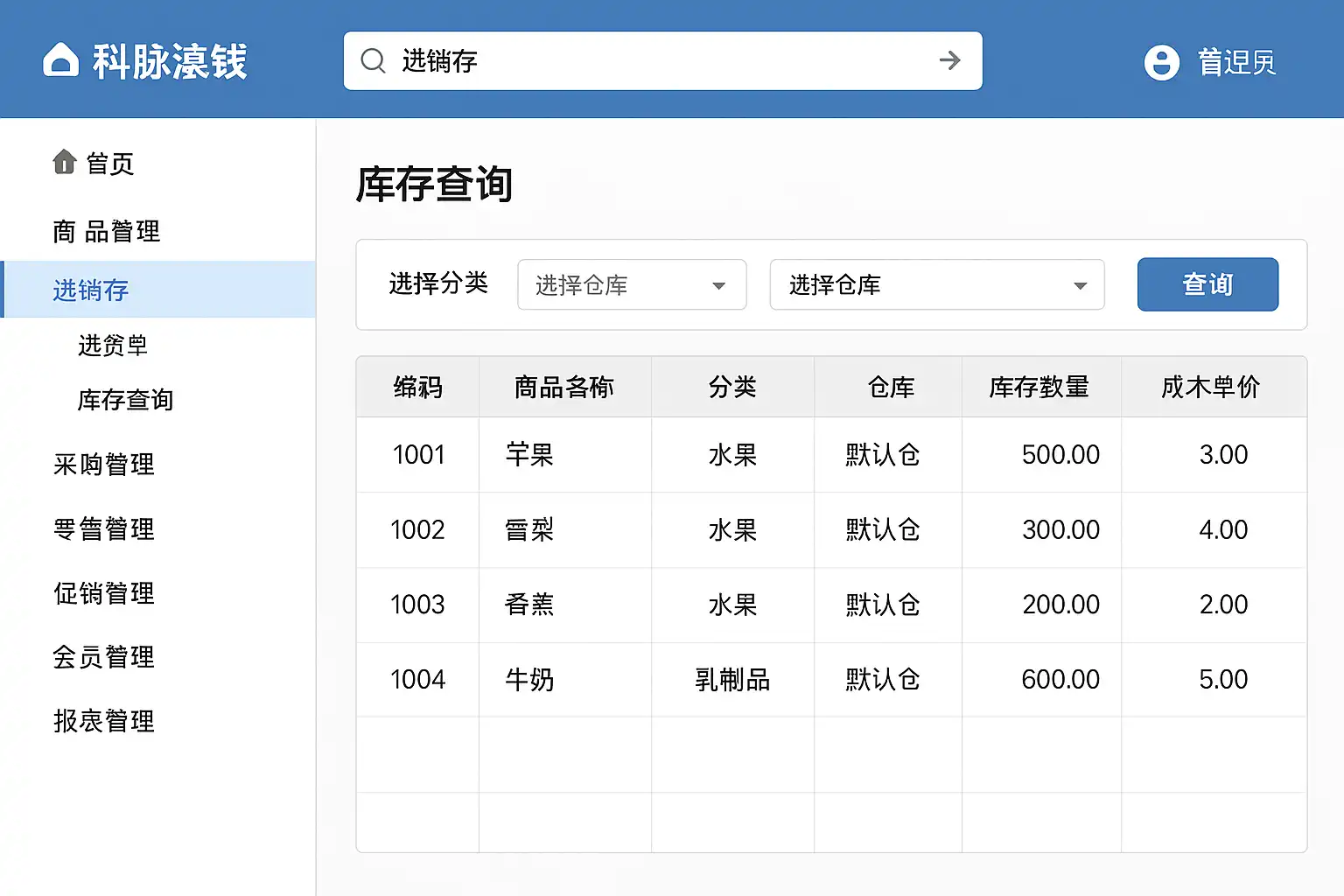 科脉赢钱作为一款广泛应用于零售与连锁门店的信息化管理系统,其“进销存”功能是企业日常经营管理的重中之重。用户可依据如下步骤实现高效查询: