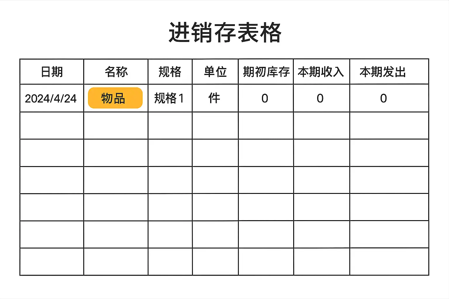 - 若涉及公式,请确保公式已向下延展至新行,以保证库存与金额计算准确无误。