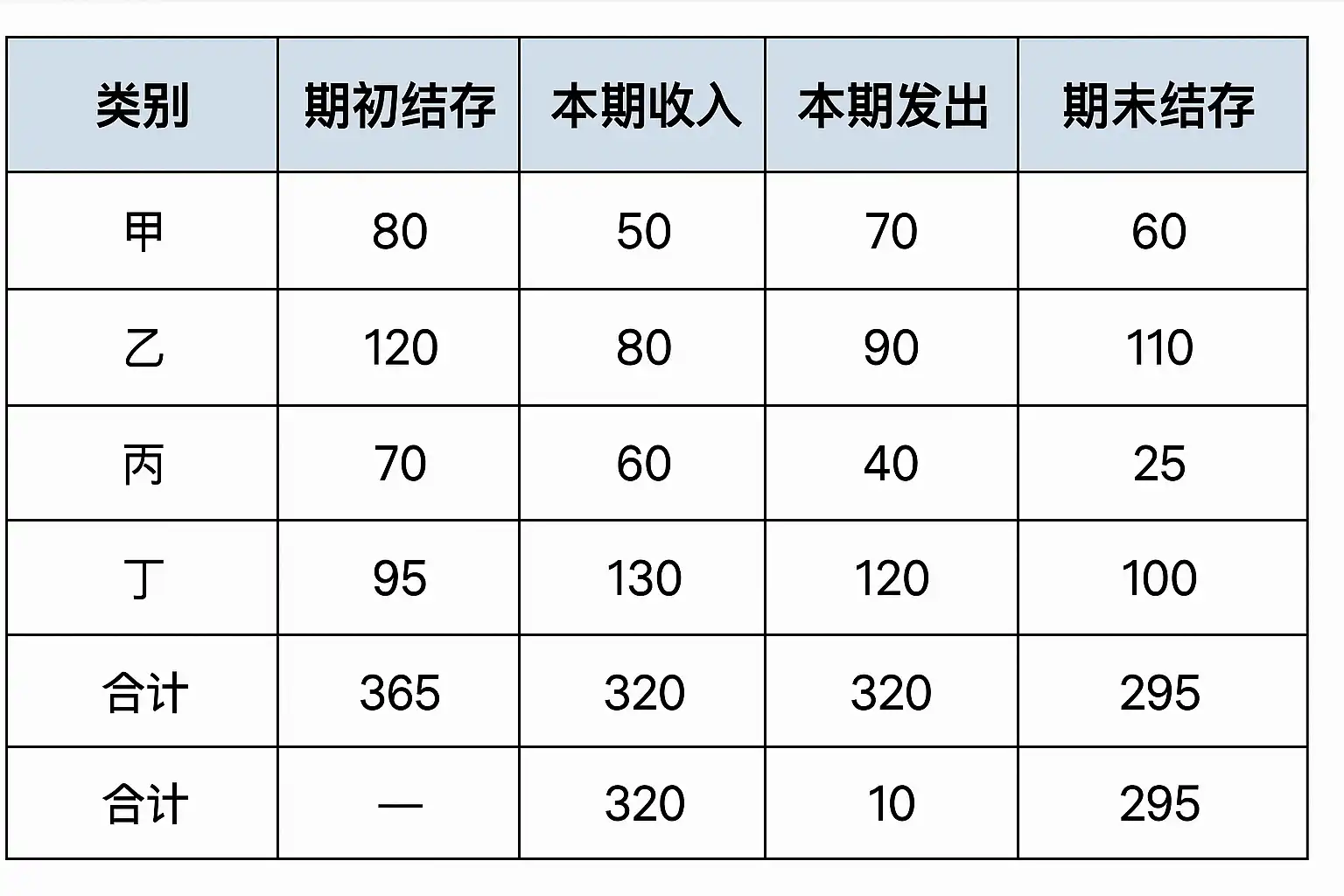 - 按公式计算“期末库存”: 期末库存 = 期初库存 + 本期间入库 - 本期间出库 ± 调整项