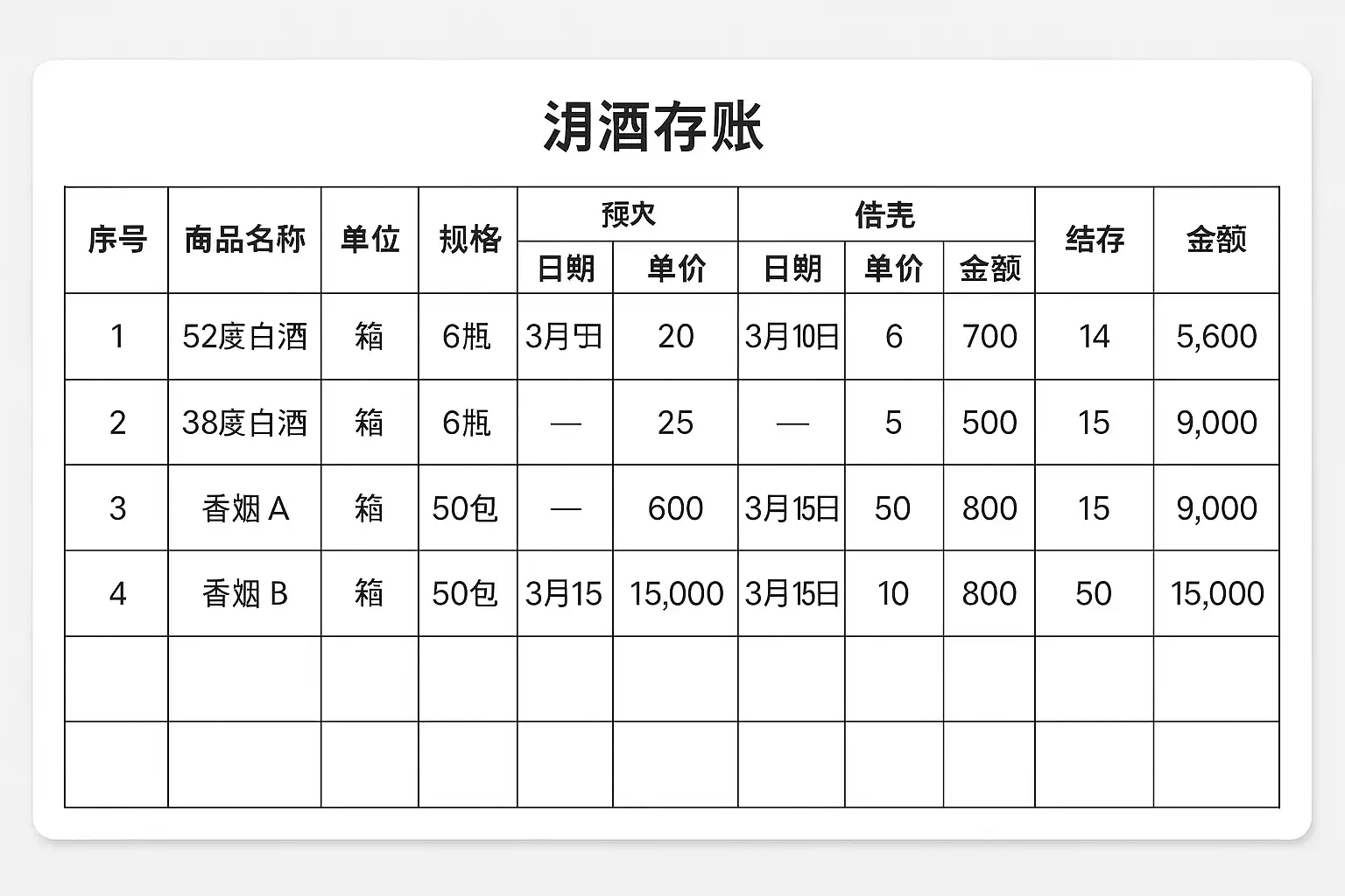 案例:某烟酒店通过引入电子表格自动计算库存余额,将库存误差率降低了30%。据统计,规范的进销存管理可提升库存周转率15%-25%。