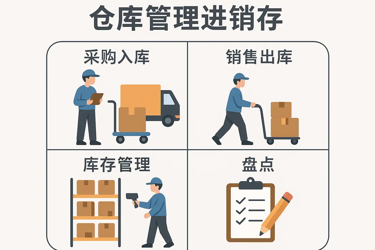 | 销售出库 | 客户订单处理,核对数量与品类 | 保证发货准确性 |