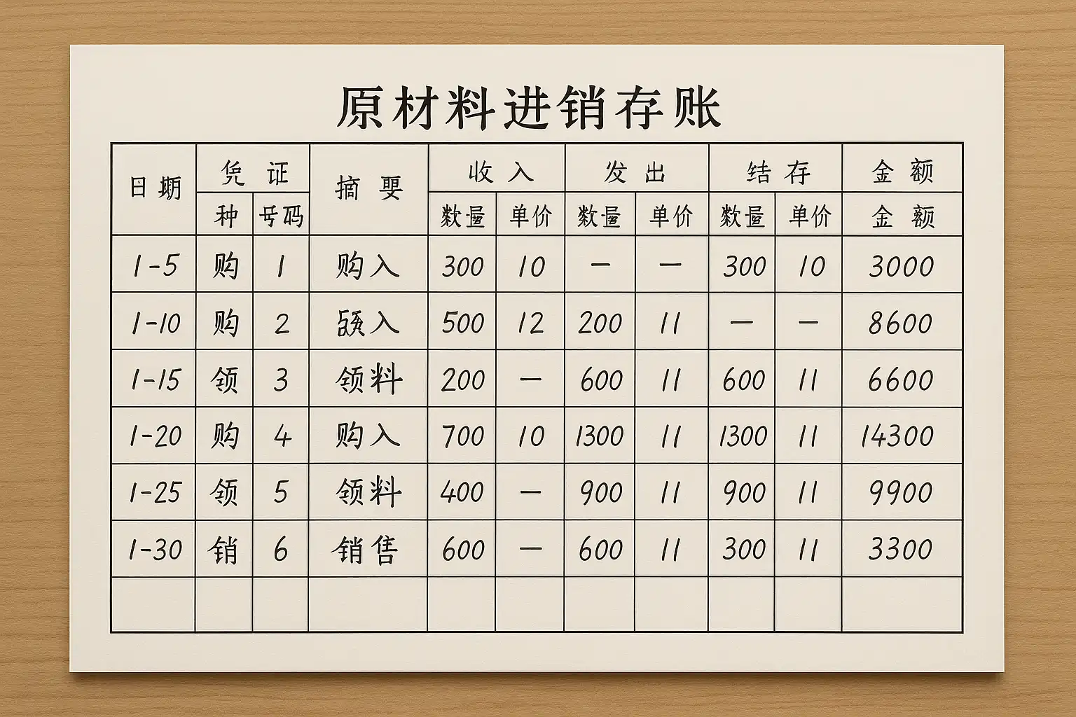 原材料进销存账怎么写?