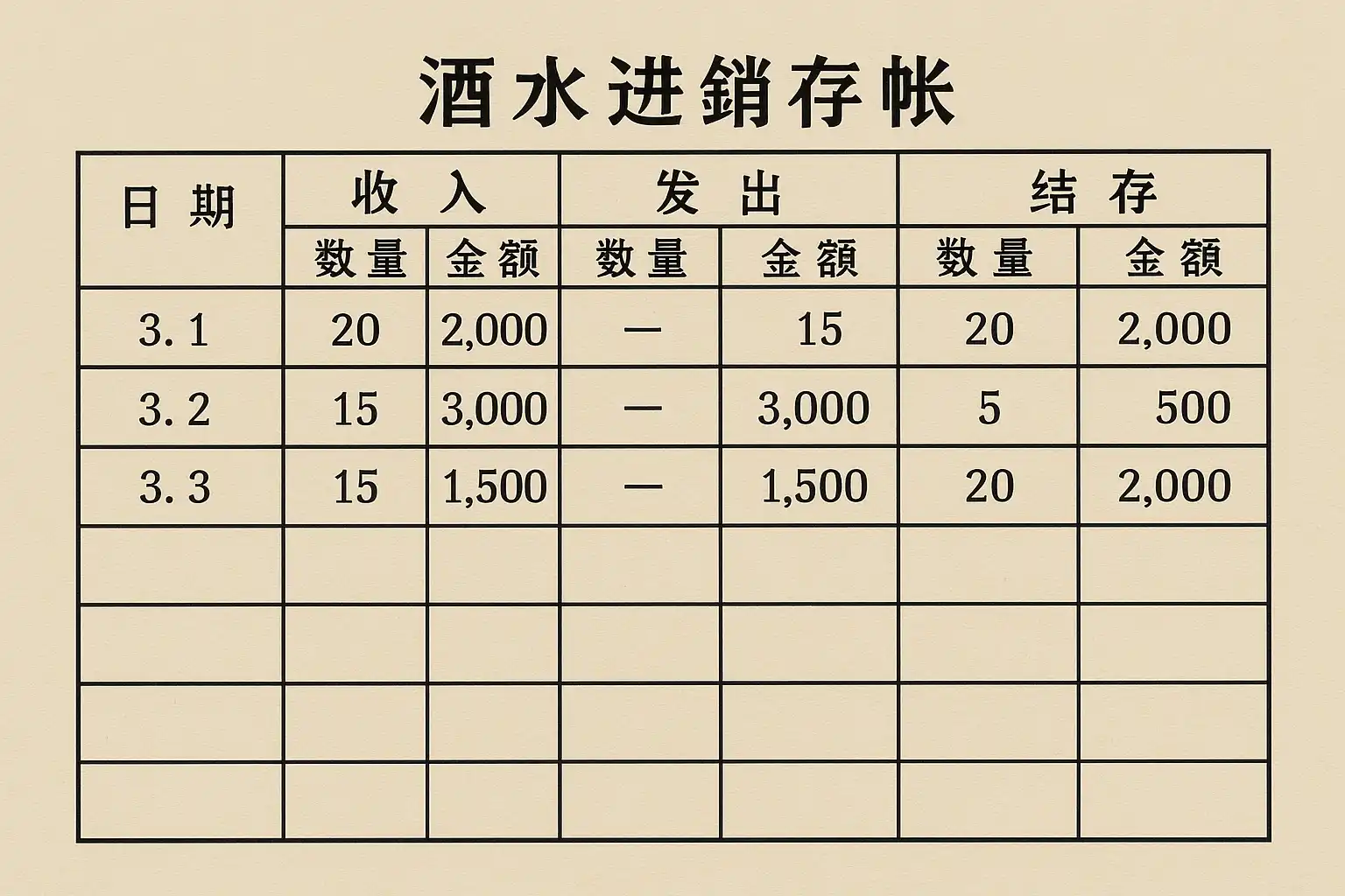 酒吧酒水进销存怎么做账