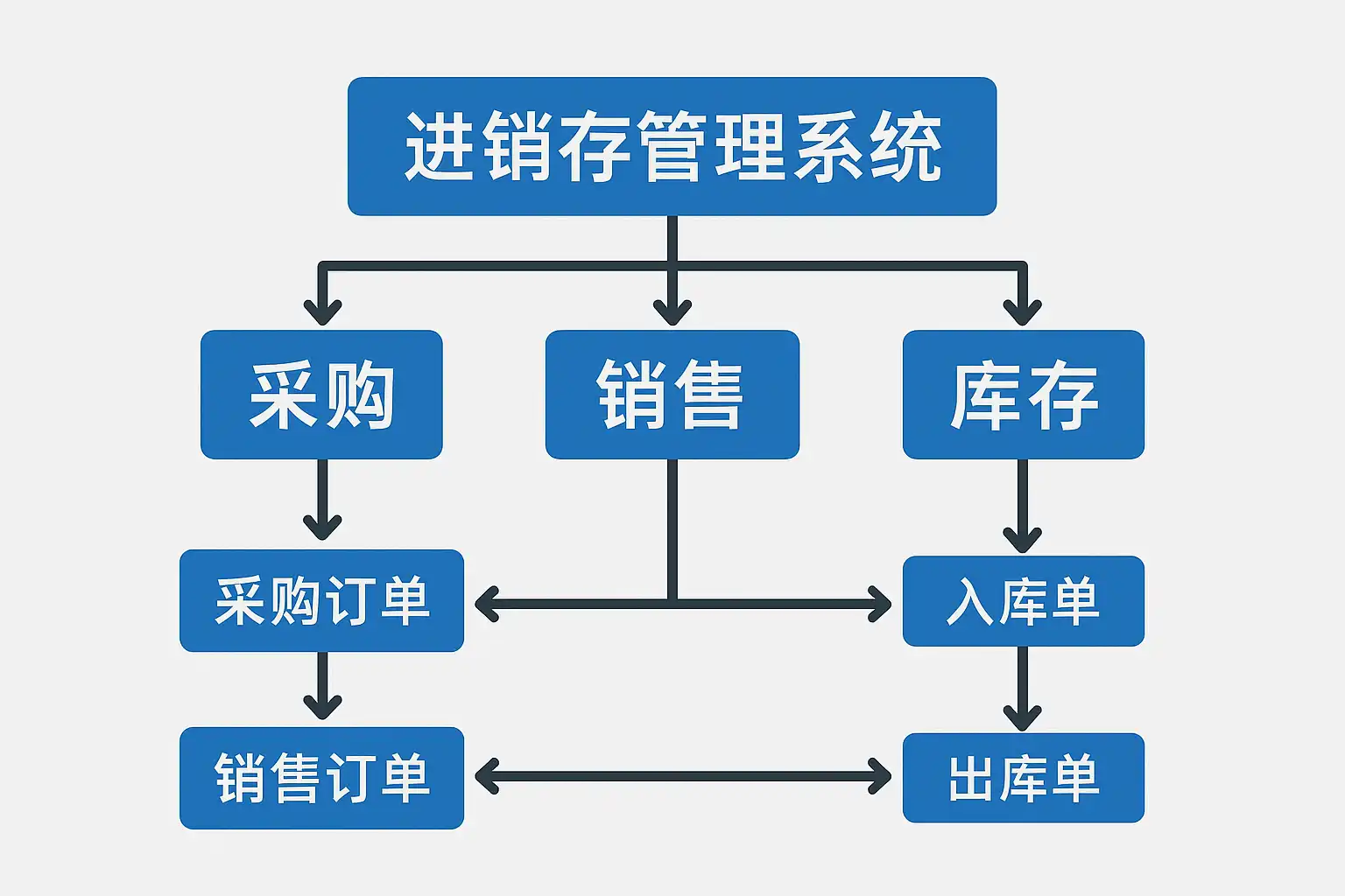 | 销售 | 客户下单,发货审核,出库 | 实现资金回流 |