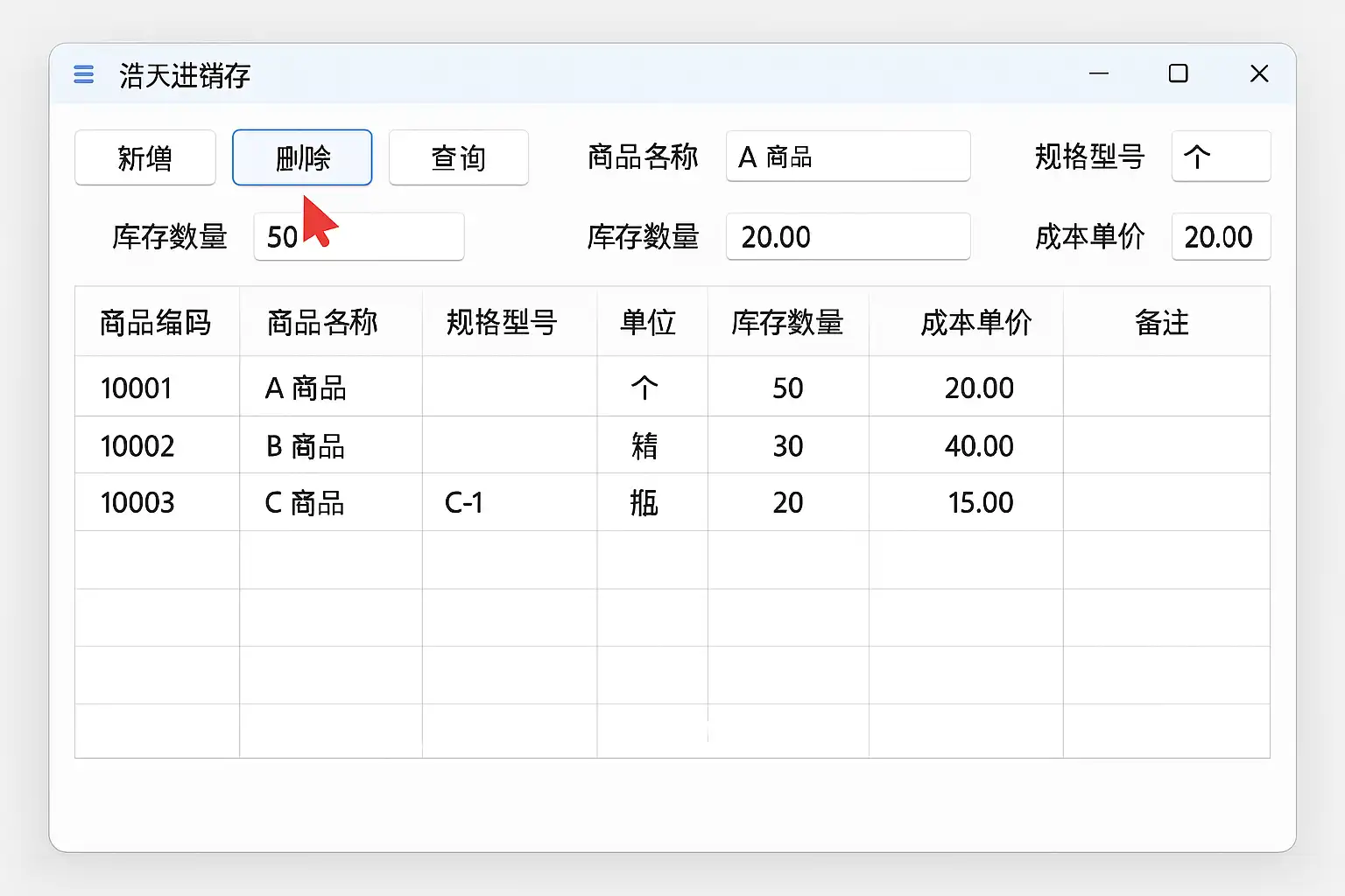 - 找到需要删除的库存记录,可以通过商品名称或编号快速搜索。