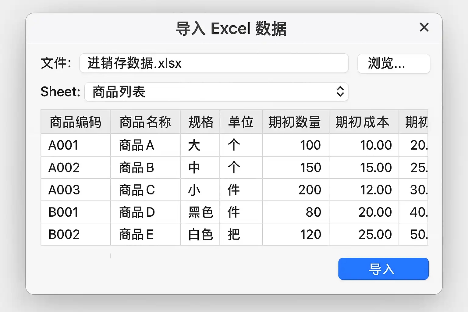 怎么用excel数据导入进销存