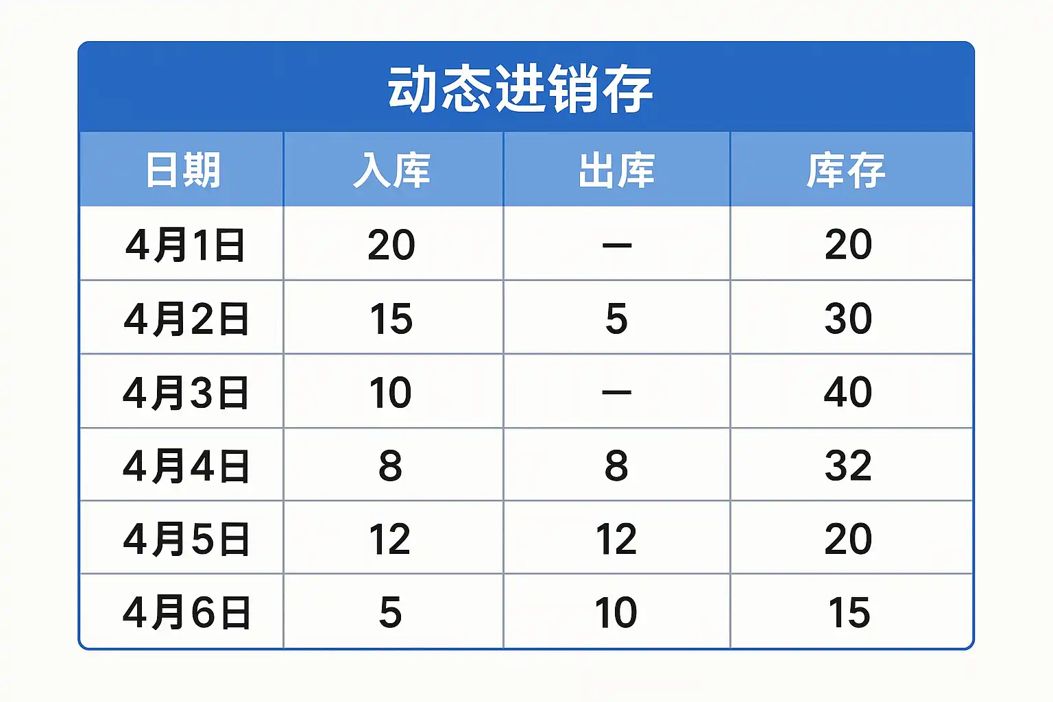 - 期末库存=期初库存+入库数量-出库数量