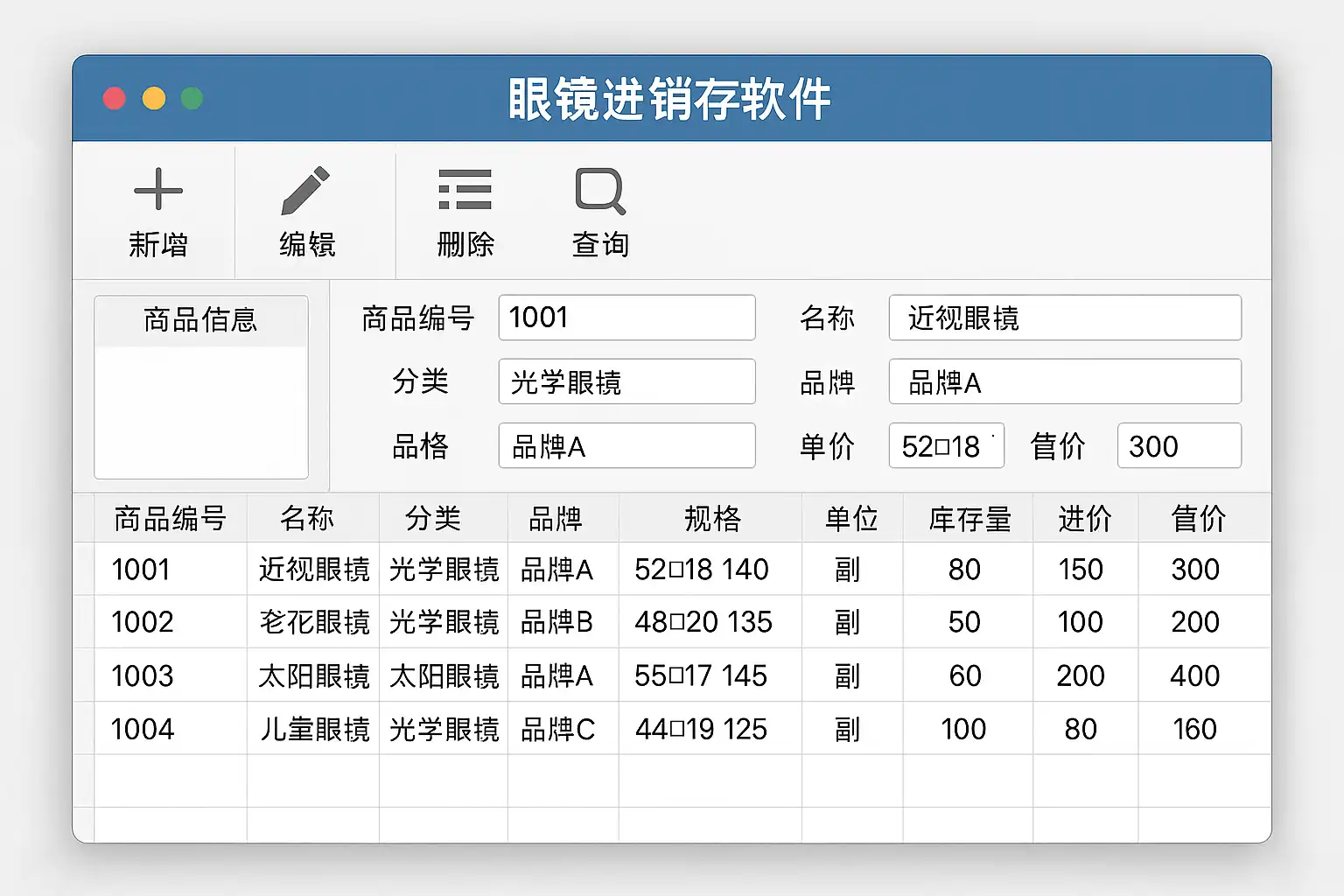 高效的眼镜进销存软件首先需要准确无误地录入所有商品的信息。具体操作如下: