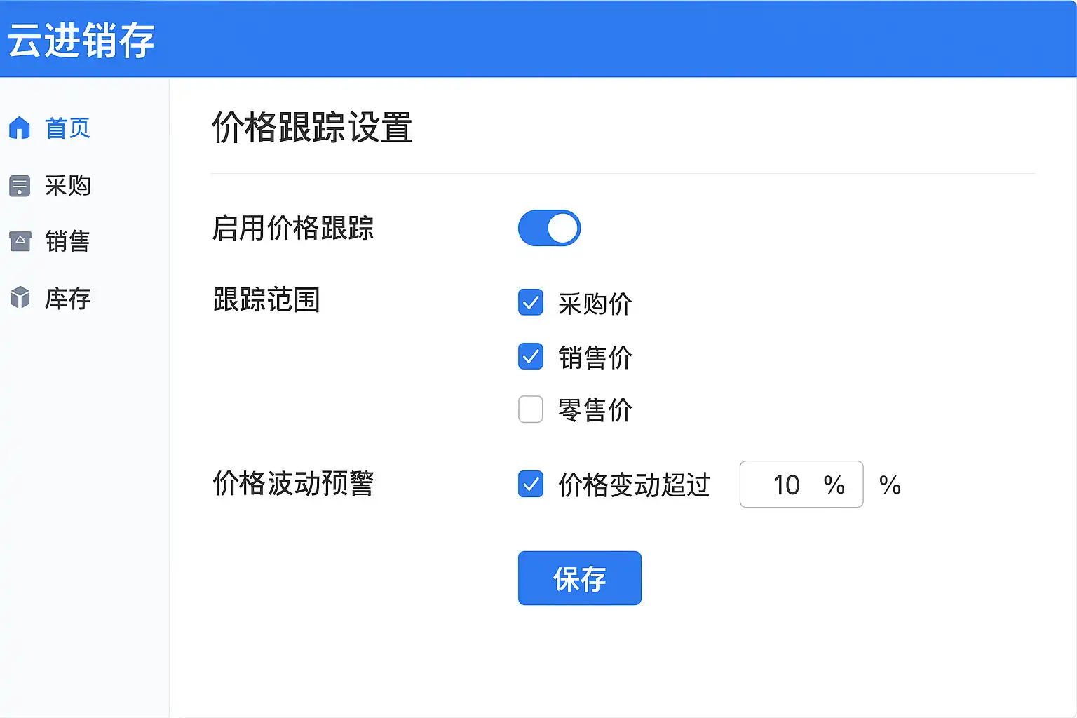 我最近开始使用云进销存系统管理库存和销售,但不太清楚价格跟踪具体该怎么设置。能详细讲讲云进销存价格跟踪的配置步骤吗?