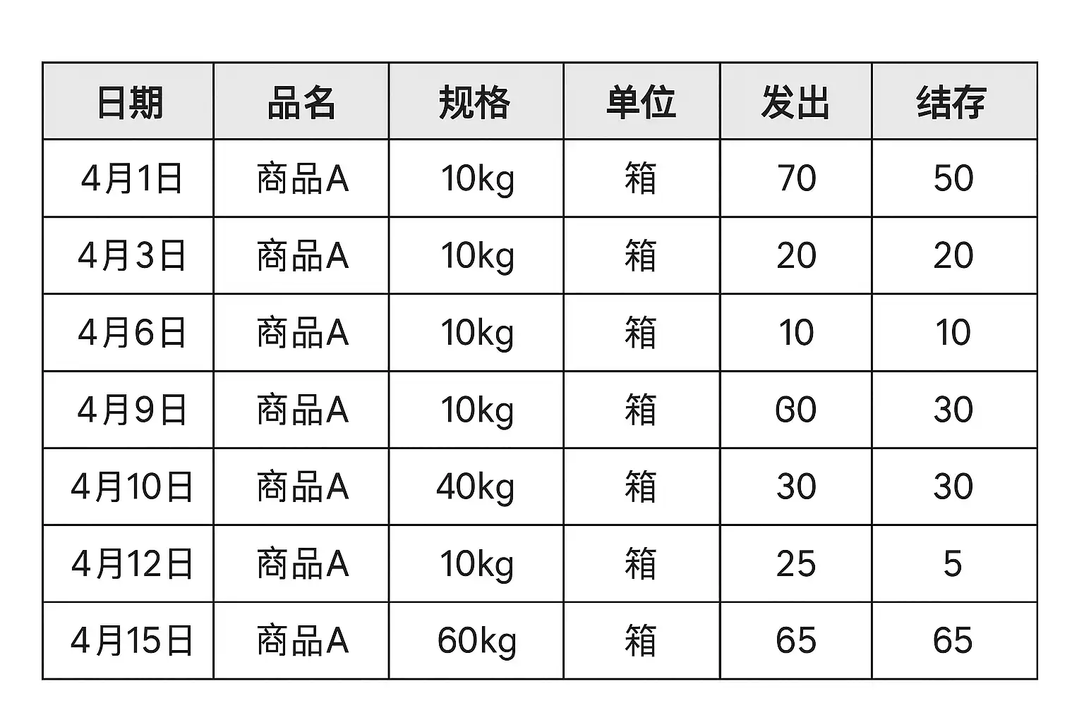 - 使用公式自动计算库存数量和金额,如“库存=上期库存+入库-出库”。