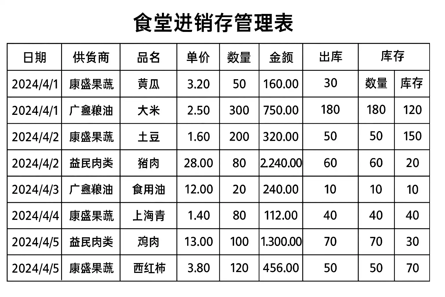 食堂进销存管理表格怎么写?