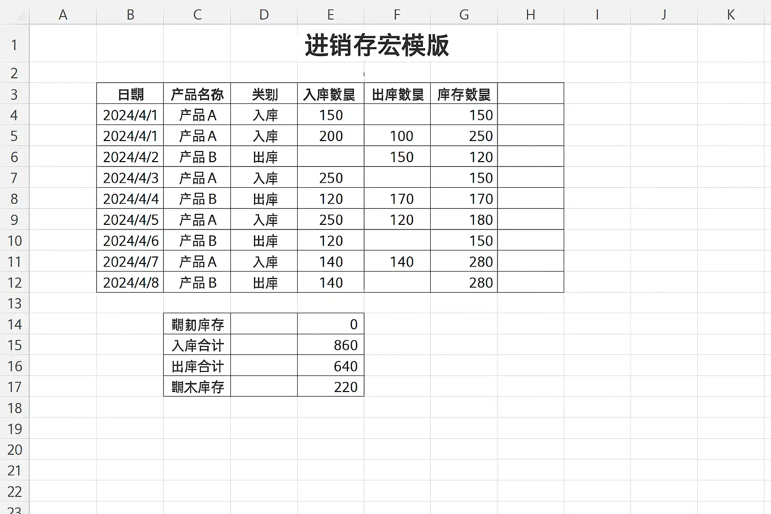 excel怎么制作进销存宏模板