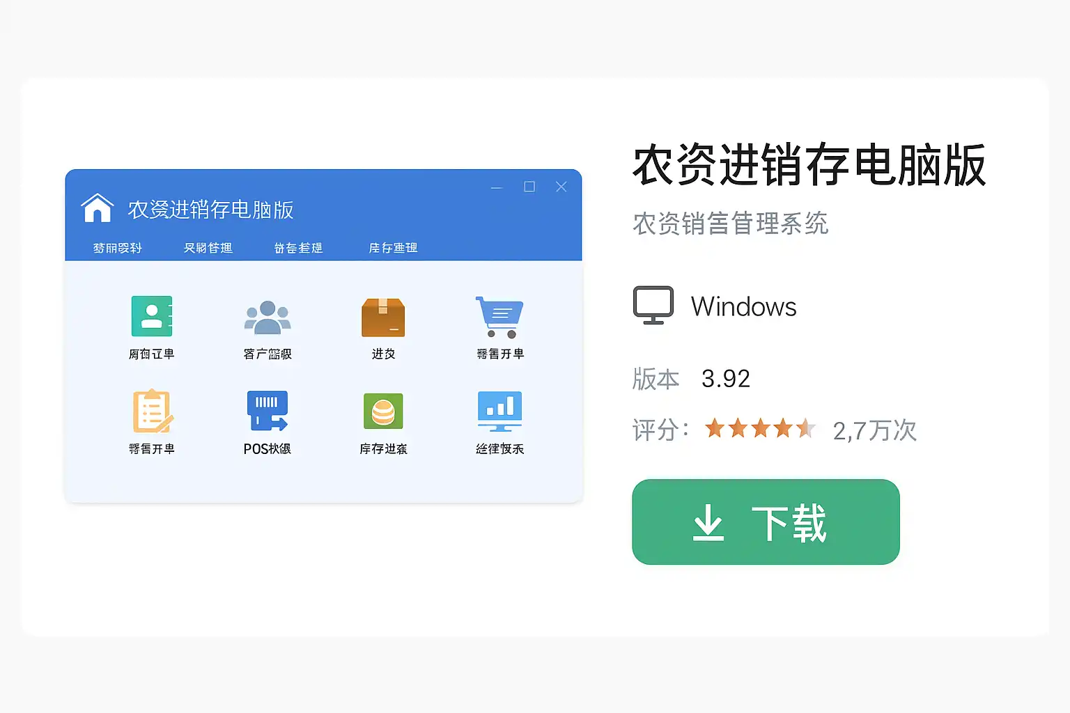 对于需要在电脑上实现农资进销存管理的企业或个人用户,目前主流的下载和使用方式有以下几种: