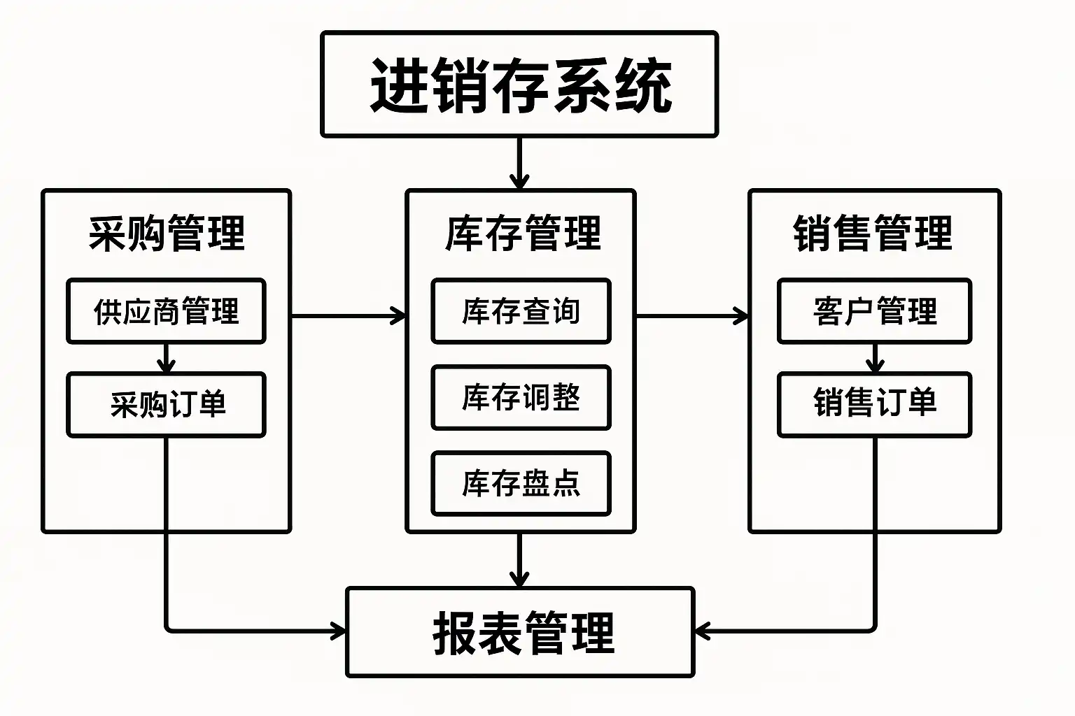- 需求分析:明确采购、销售和库存管理的业务流程。
