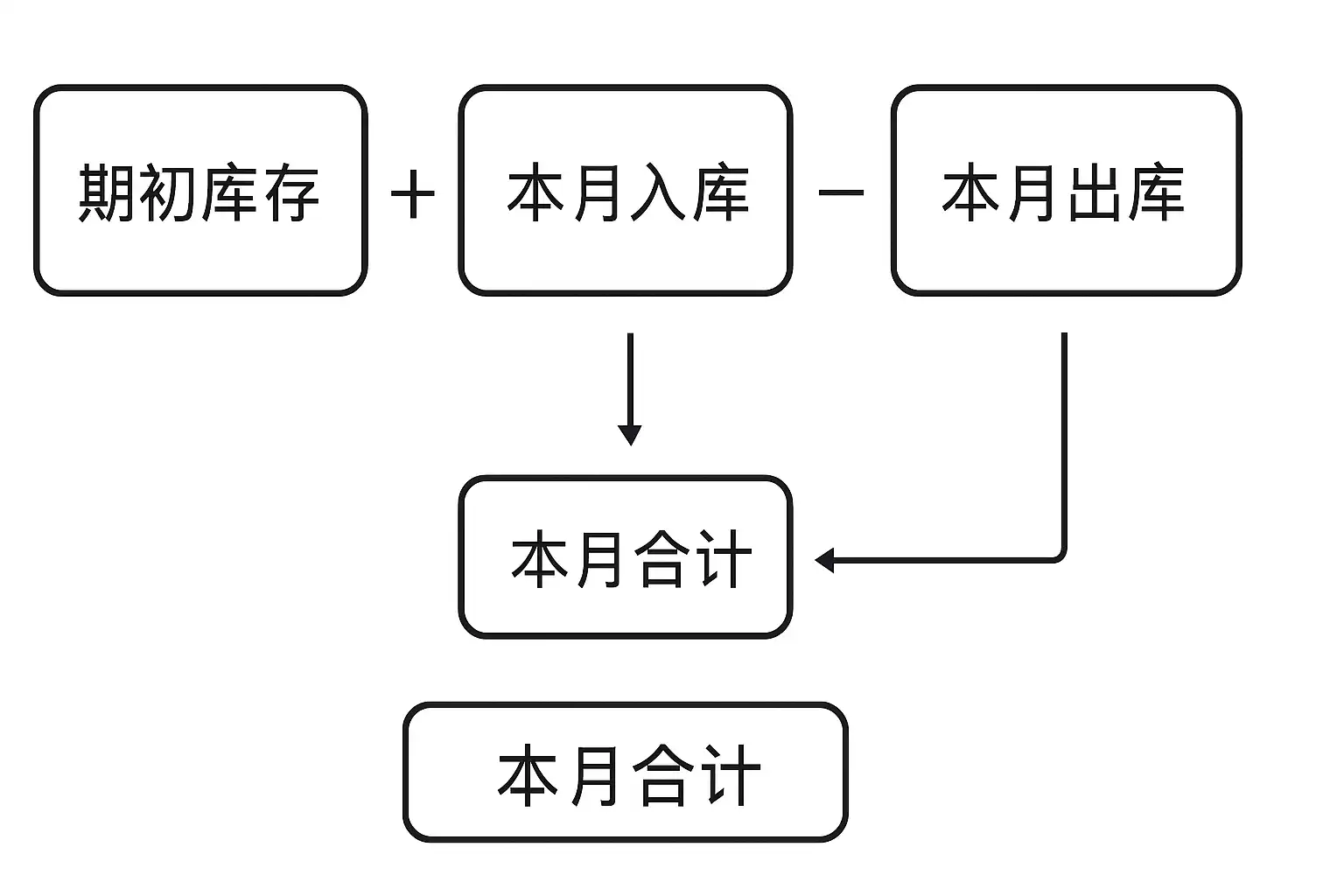 - 本月出库合计 = 月内所有出库数量或金额之和