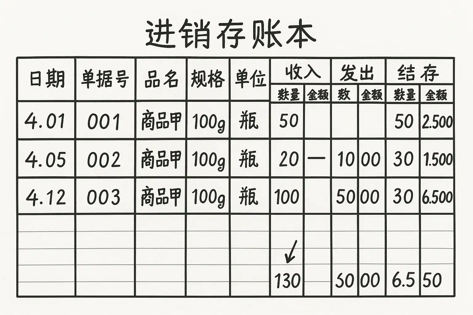 案例说明:某企业采用成本价填写出库金额,库存减少100件,单价20元,则出库金额为2000元。这样可以准确反映库存成本变化。