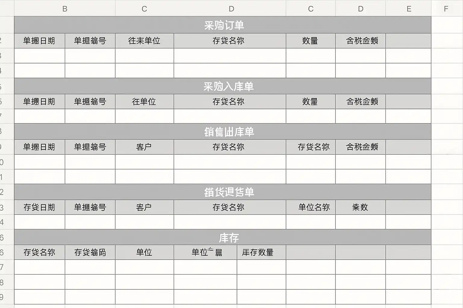 - 支持一键生成采购、销售、库存等各类常见业务单据模板;