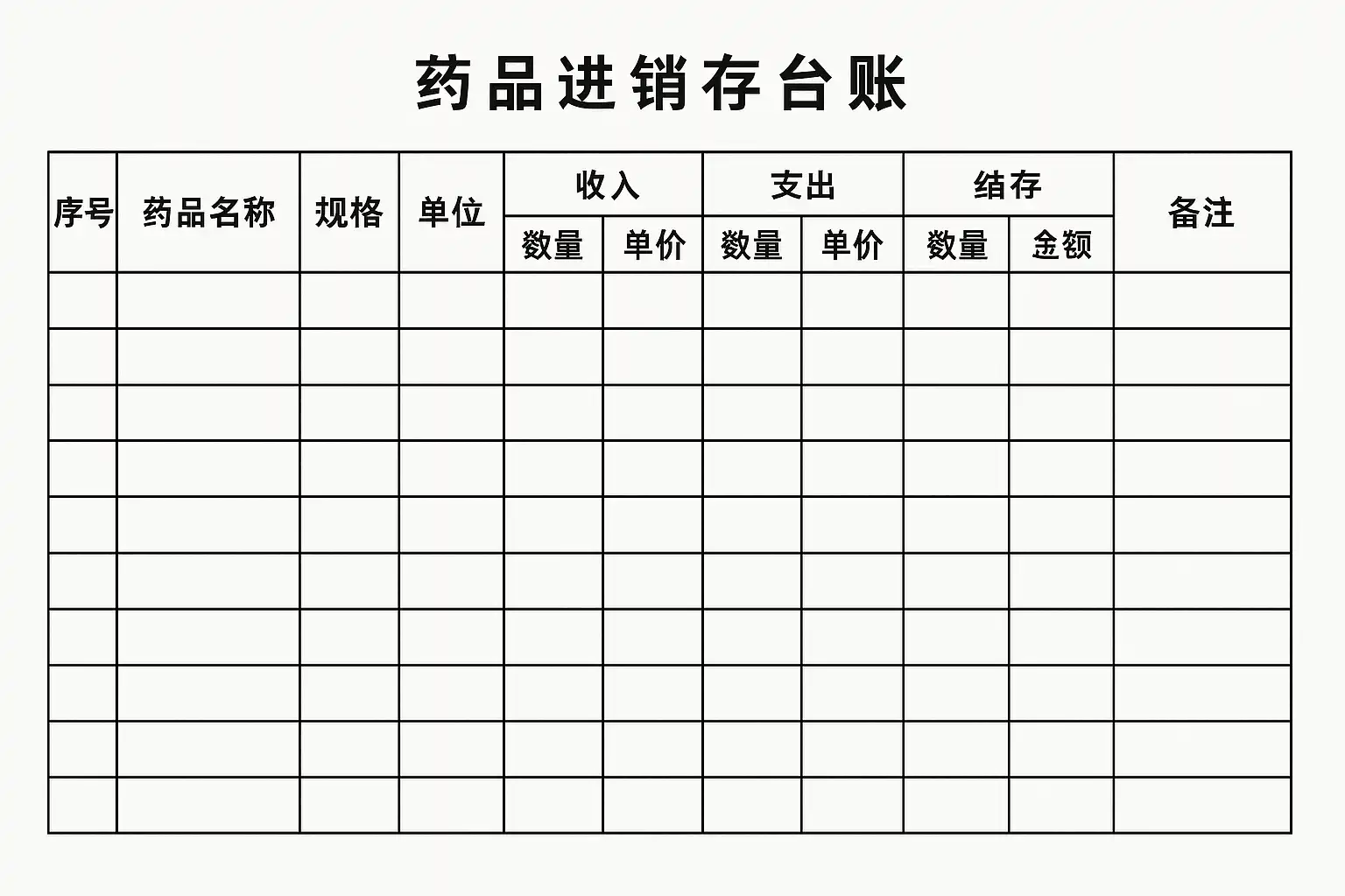 二、标准化的药品进销存台账样板结构说明