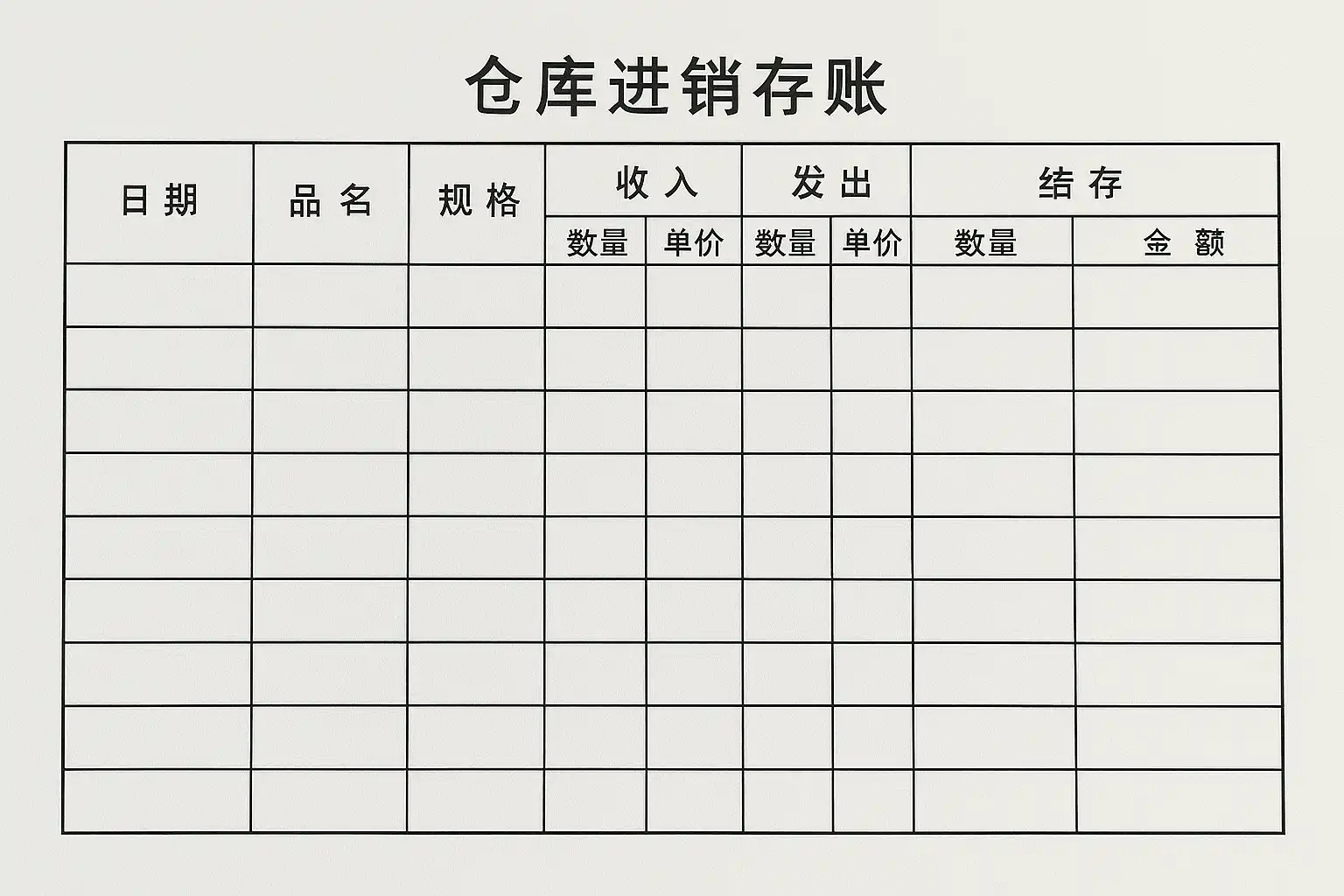 - 建立标准化的进销存登记表,包含商品名称、规格、数量、单价及时间等字段;