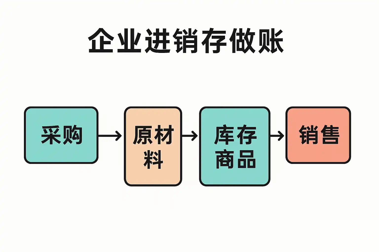 对于有进销存业务的企业而言,会计做账需紧密围绕采购、销售和库存三个环节展开。其基本流程如下: