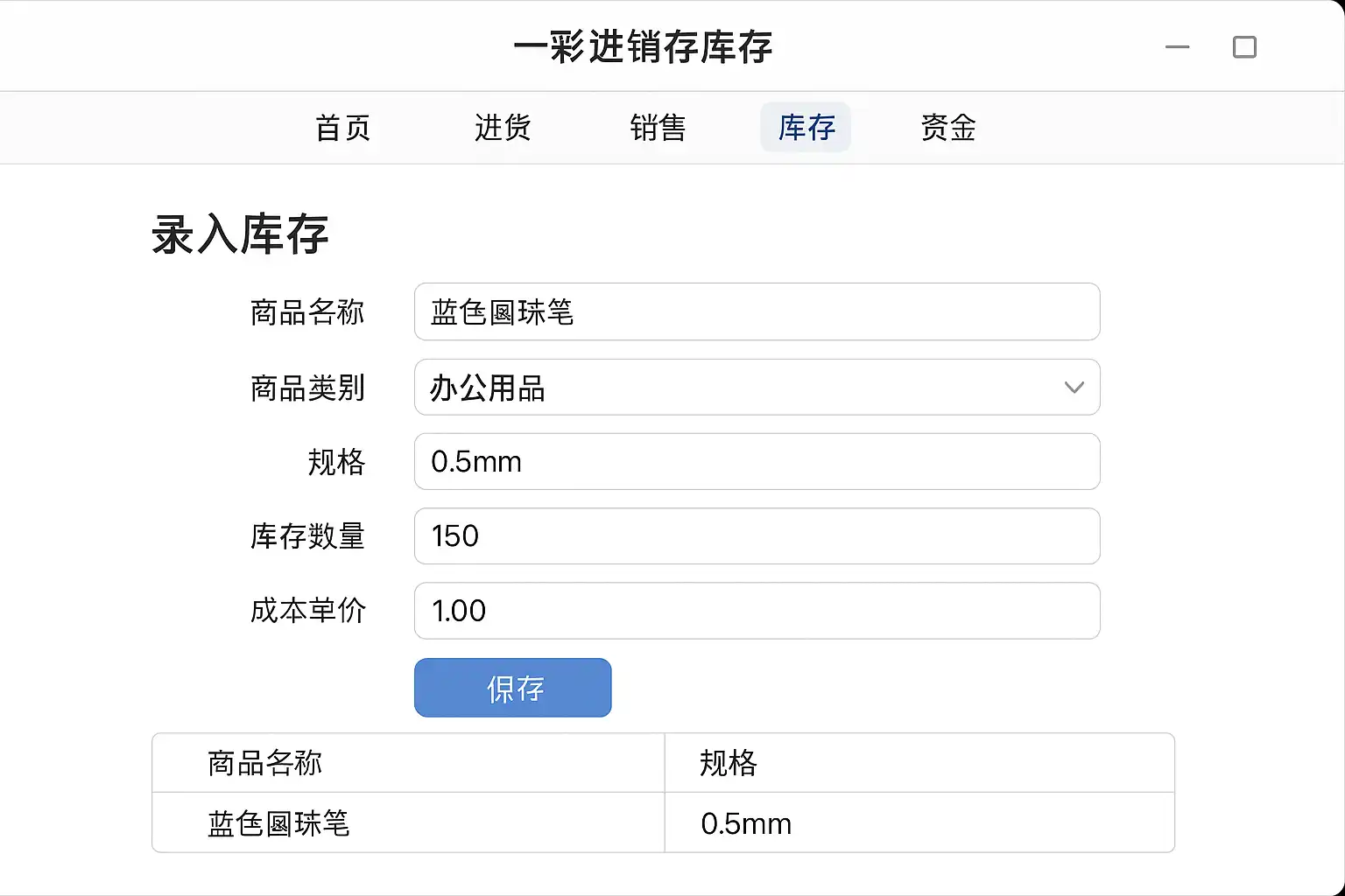 - 选择【库存录入】功能,填写商品名称、规格、数量、仓库位置等基本信息。