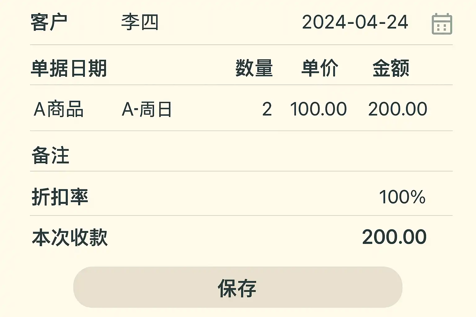 | 5 | 确认并保存开单 | 数据自动同步至后台 |