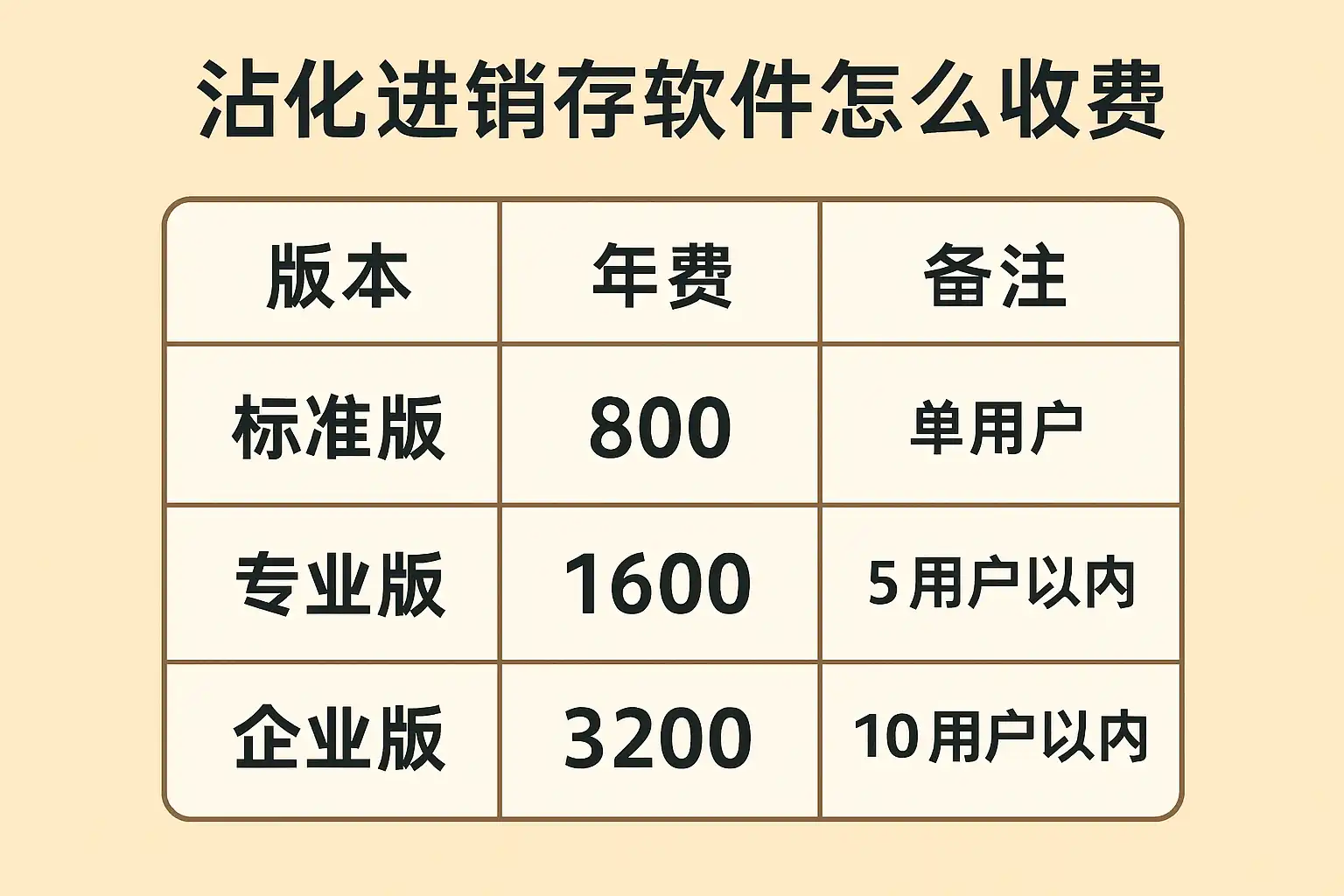 - 基础版(采购管理+销售管理+库存管理),一般几百元至两三千元/年不等。