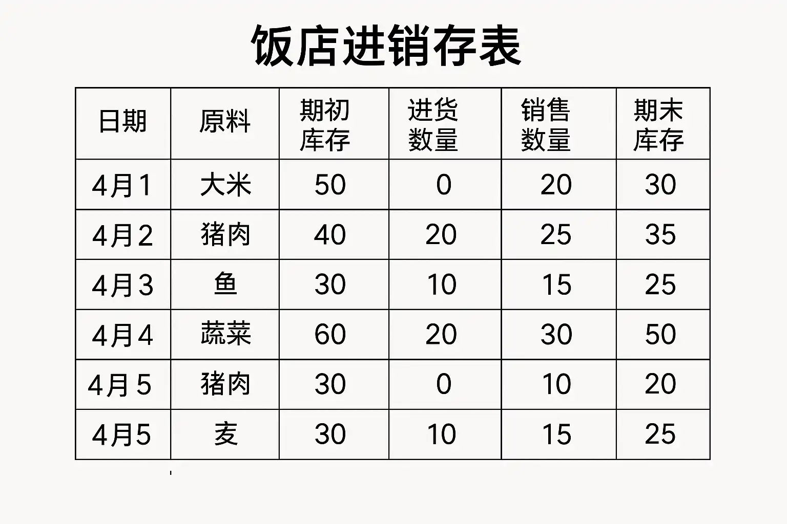 饭店进销存表格怎么做