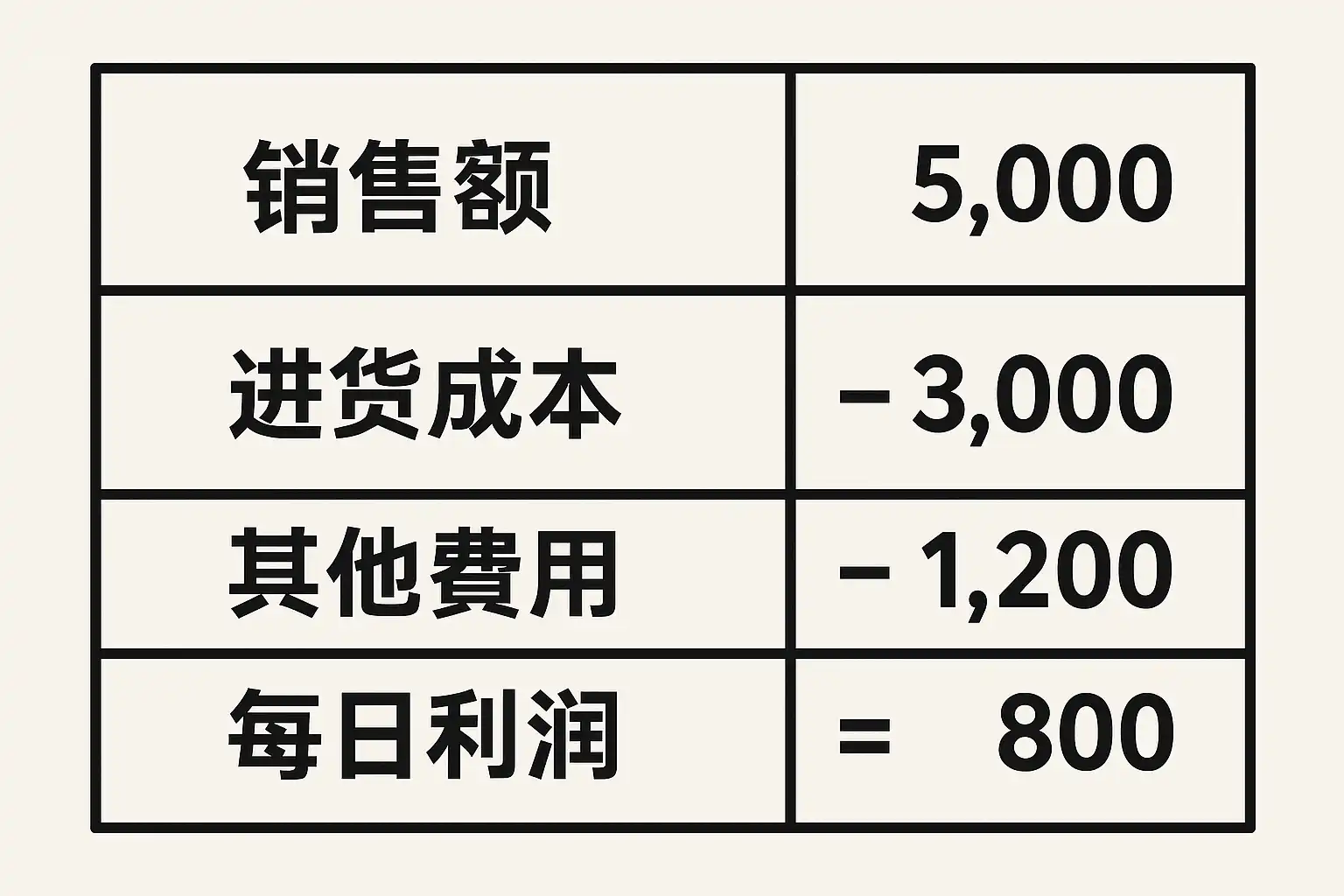 定义公式: 每日利润 = 当日销售收入 - 当日销售成本 - 当日运营费用