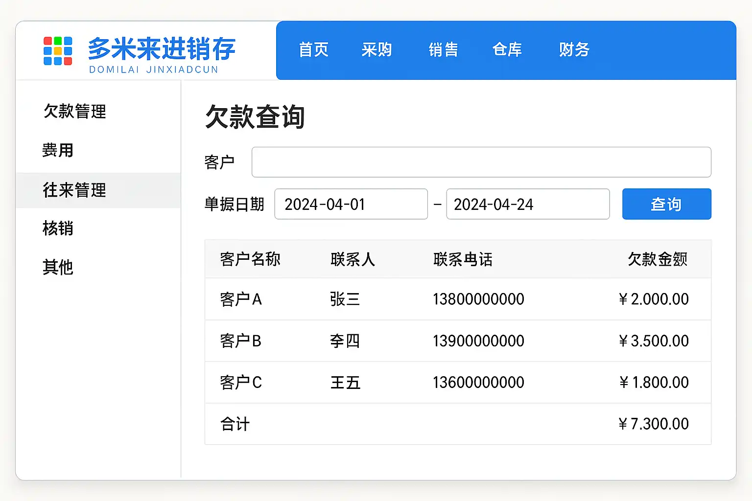 多米来进销存系统中如何快速查询客户欠款?
